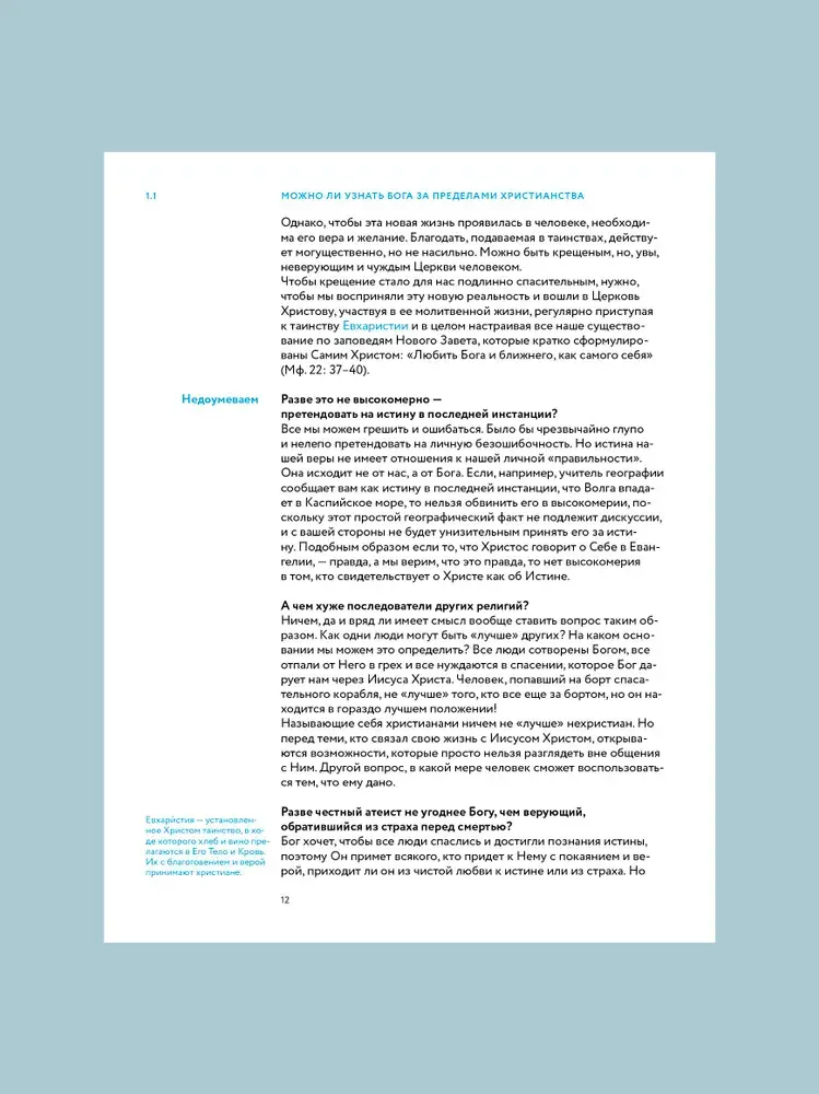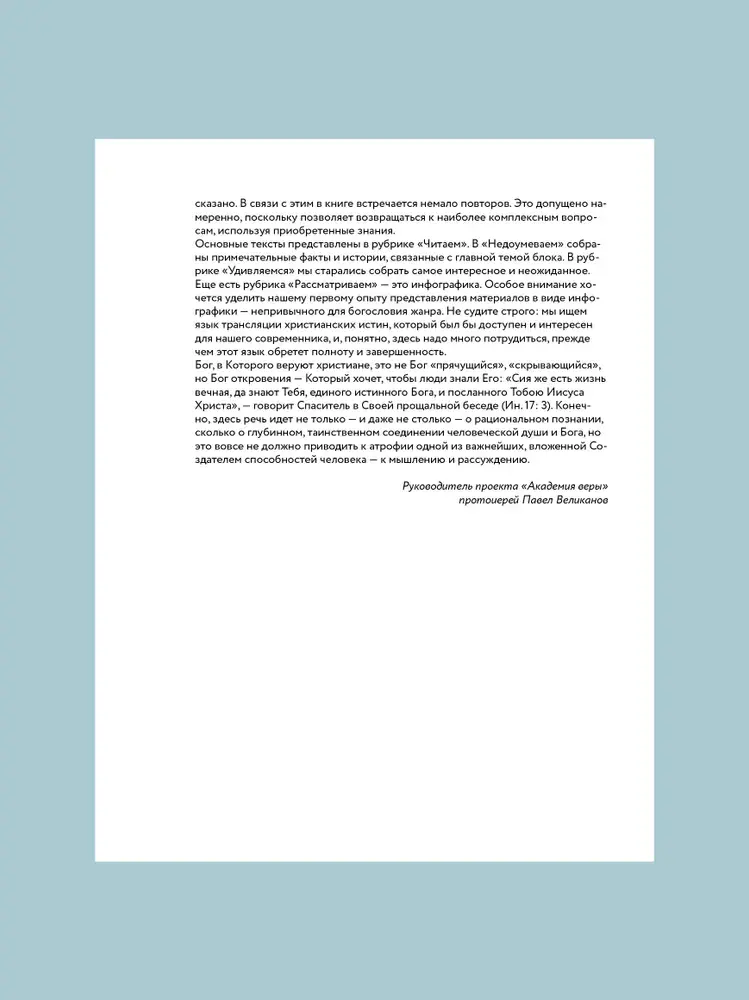 Авторы — священники и богословы — смело и открыто говорят с читателем на самые разные темы, отвечают на вопросы, касающиеся не только богословия, но также затрагивают исторические, культурологические и даже психологические аспекты православной веры.