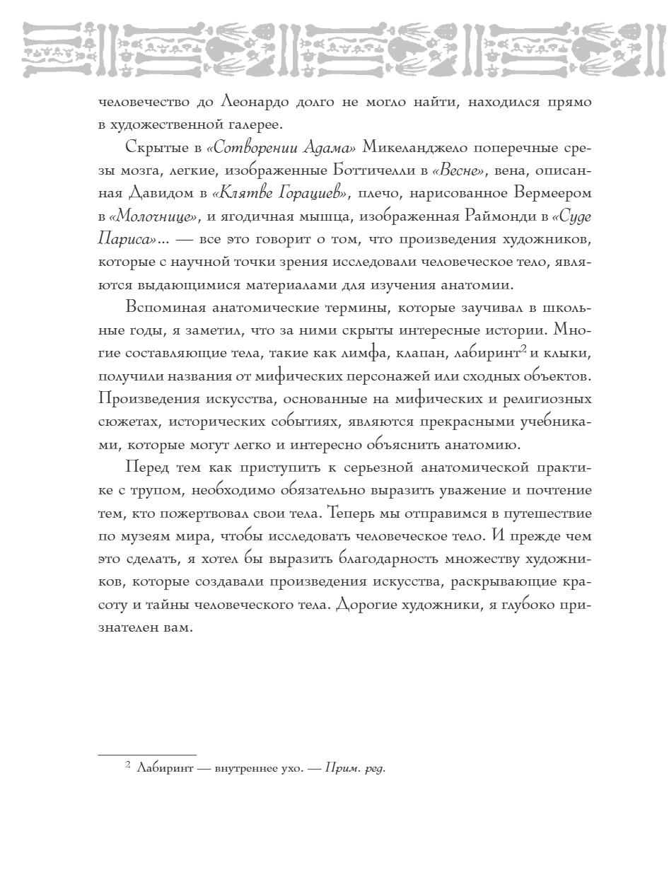«Анатомия — одна из сложнейших медицинских дисциплин, которая невероятно трудна для художественного изображения. Умение объёмно выразить на холсте или в мраморе малейшие детали человеческой анатомии, при этом анатомии живого и мёртвого человека, это невероятная способность гениальных творцов, произведения которых сохранились до наших дней. Написанная лёгким, живым языком, книга будет очень интересна широкому кругу читателей». — Алексей Решетун, врач судебно-медицинский эксперт, автор бестселлеров «Вскрытие покажет», «Доказательства по телу» и др.