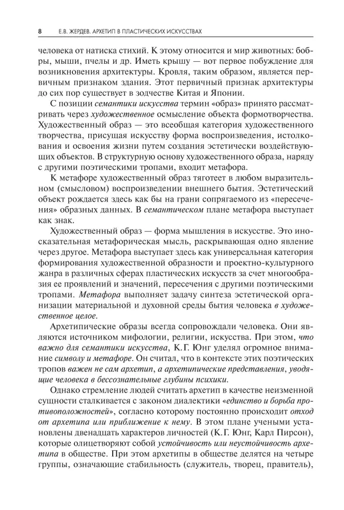 В этом контексте архетип в пластических искусствах, относящихся к невербальному языку. впервые рассматривается не только с позиции психоанализа, но и с позиции семиотического анализа, включающего в первую очередь семантико-метафорический и символический аспекты.