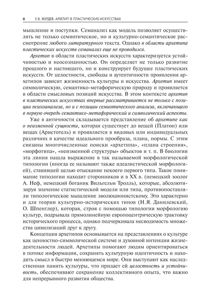 Поскольку понятие «архетип» состоит из двух слов — «архе» и «тип». представляющих собой некий симбиоз, впервые проанализировано каждое из них в отдельности. чего до настоящего времени в области пластических искусств не было осуществлено. что позволяет понять их синергетический эффект в суммарном выражении. В монографии рассматривается попытка деконструкции архетипа в пластических искусствах и тенденция вечного возвращения к нему.