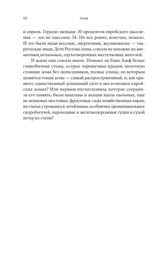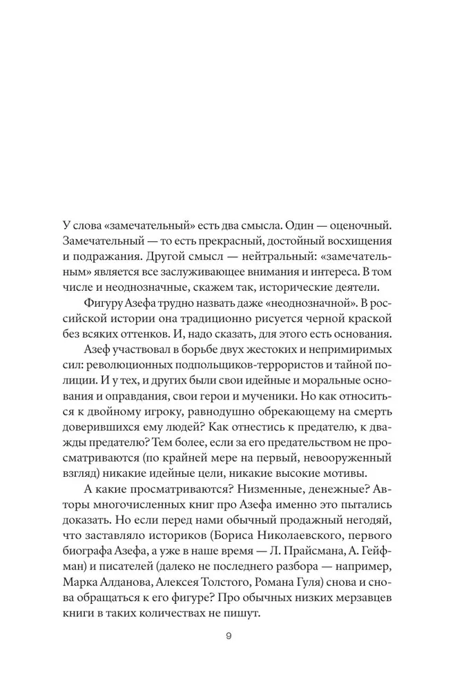 Замечательная биография знаменитого провокатора Евно Азефа: очень основательная, с таким достоверным и зримым историческим фоном, который способен нарисовать лишь знаток эпохи, и с такими психологическими портретами участников событий, которые может создать лишь талантливый литератор.