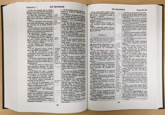 В тексте Нового Завета в квадратные скобки заключены слова, взятые из славянского перевода или поздних греческих рукописей.