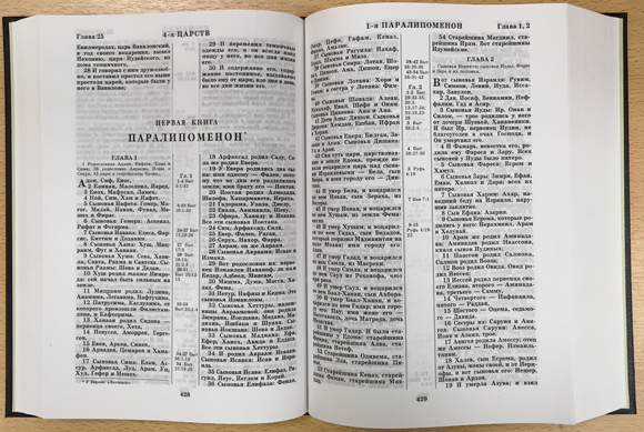 В тексте Ветхого Завета в квадратные скобки заключены слова, взятые авторами Синодального перевода из Септуагинты (греческой Библии). В настоящем издании эти вставки из греческой Библии сохранены лишь там, где, с точки зрения современной текстологии, греческий текст может быть ближе к первоначальному, чем дошедший до нас еврейский.