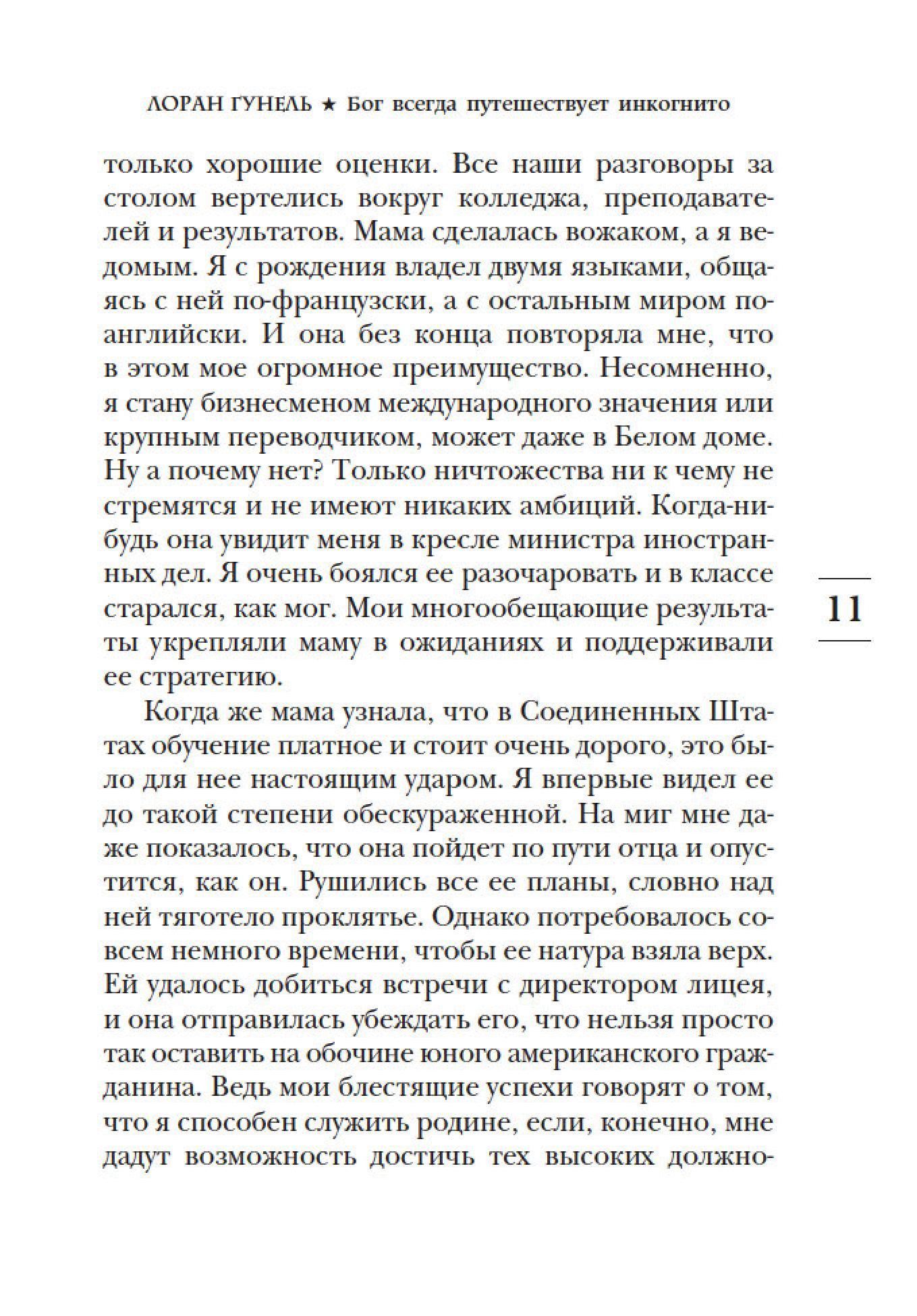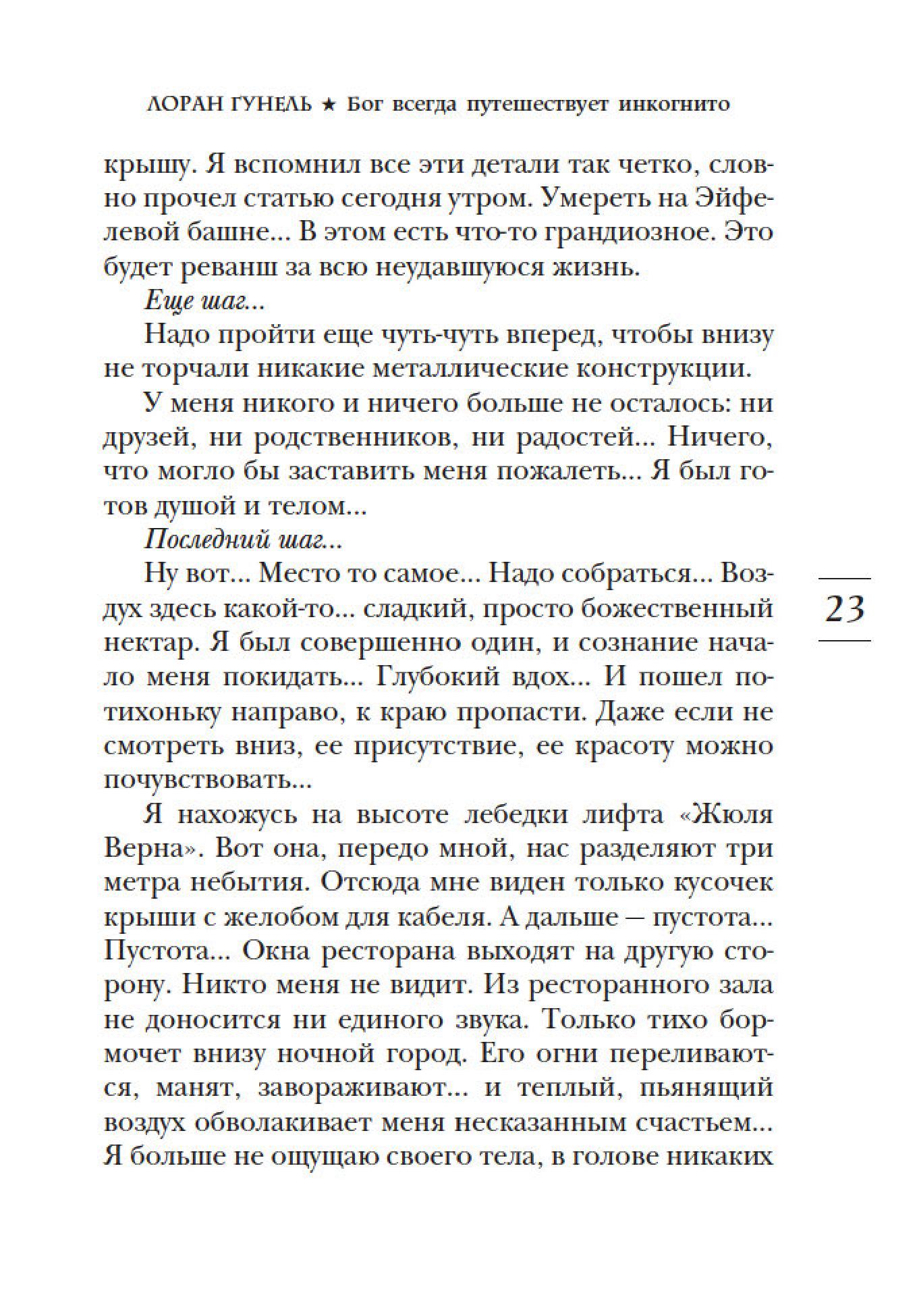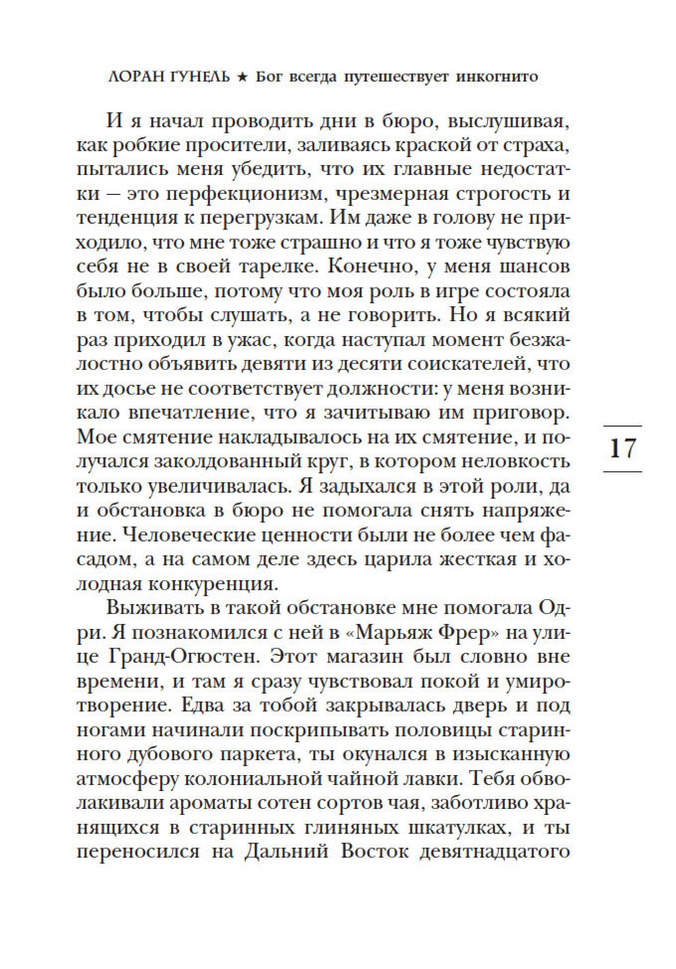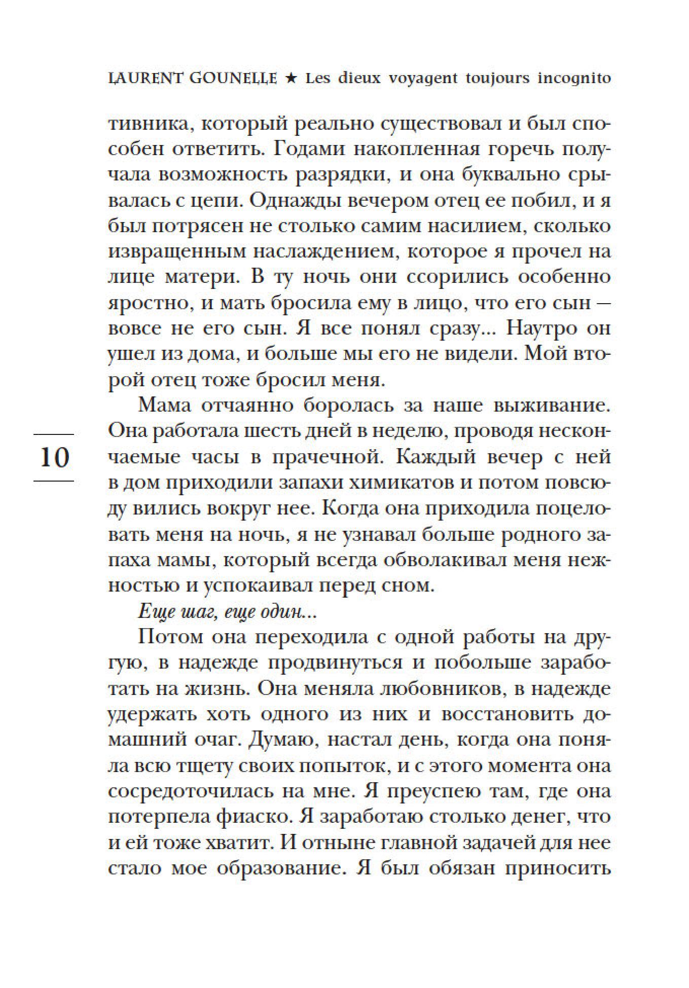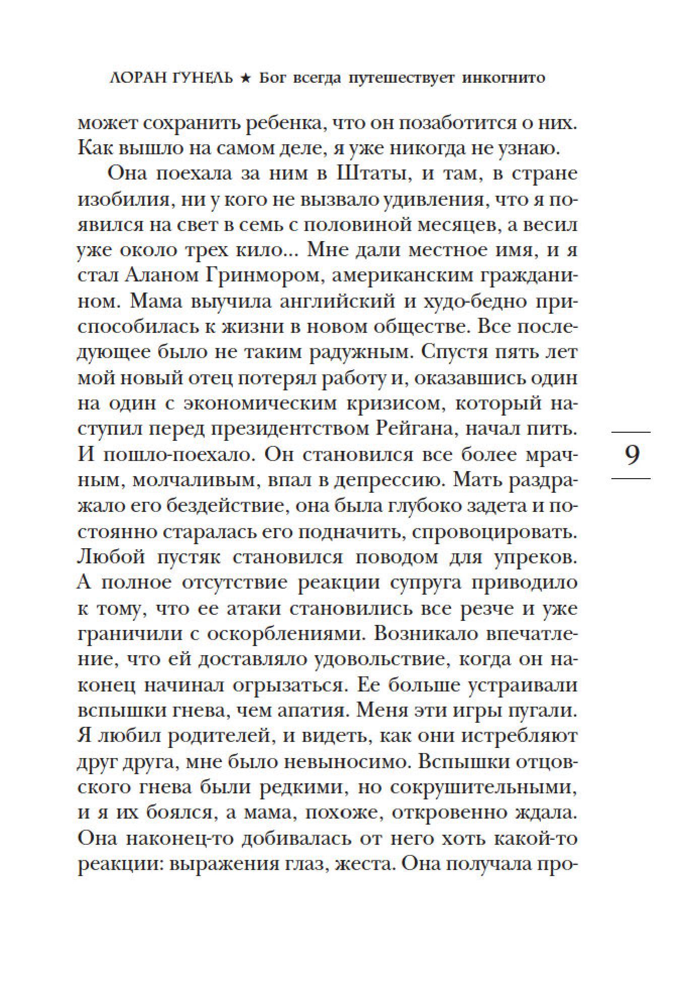 Книга «Бог всегда путешествует инкогнито» Лорана Гунеля, входящего в пятерку самых популярных беллетристов Франции, стала всемирным бестселлером, несколько лет возглавляла топ-листы продаж во Франции и была переведена на множество языков.