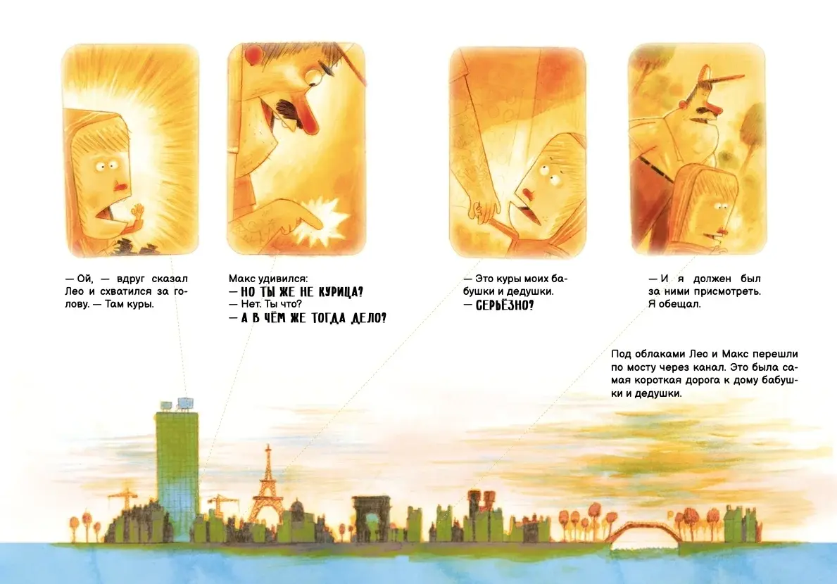 Так начались их удивительные поиски, в которых будут и полицейские, и курицы, и папа, и торт, и даже каскадёр.