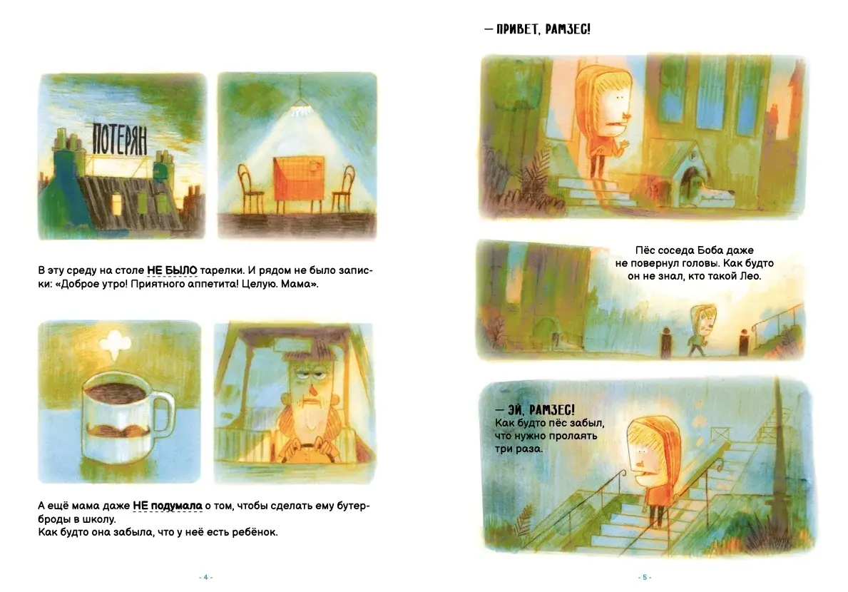 Дома мама не оставила записки, в школе его не узнала учительница и одноклассники. Лео как будто стал невидимкой, и поэтому он решил отправиться на поиски самого себя.
