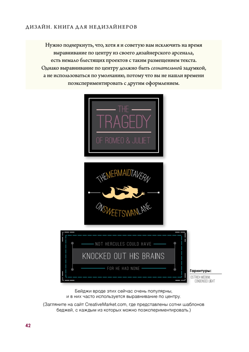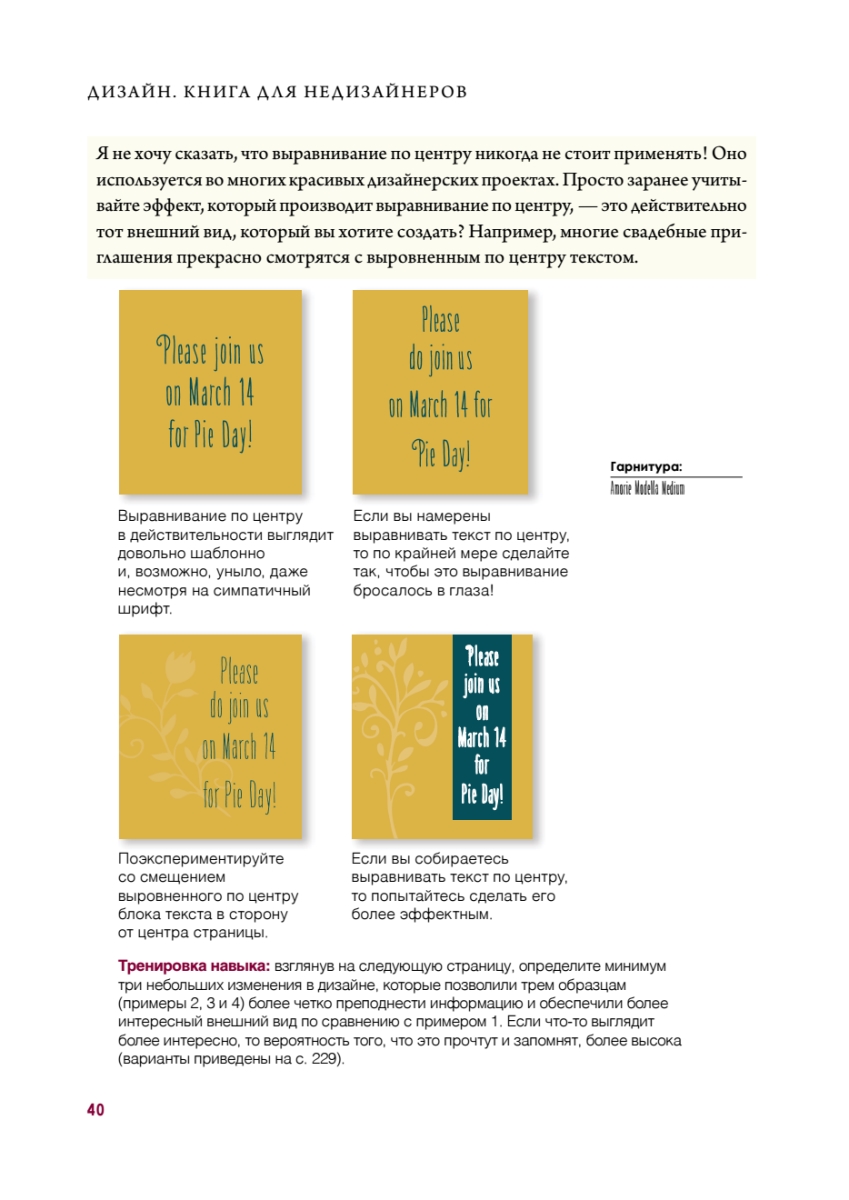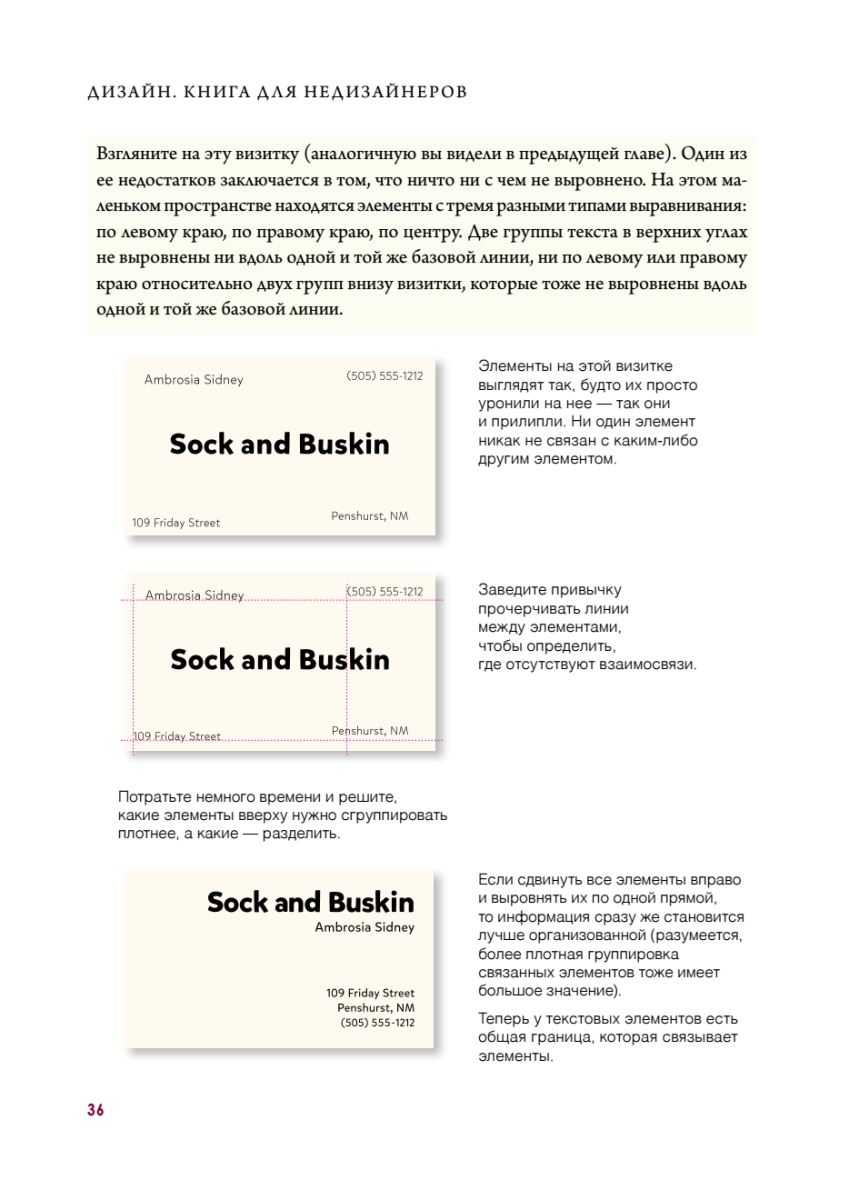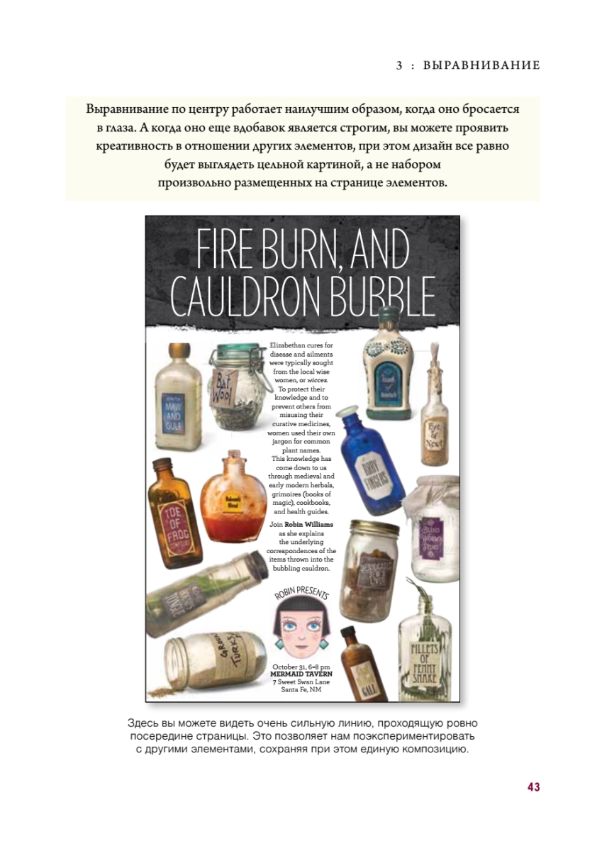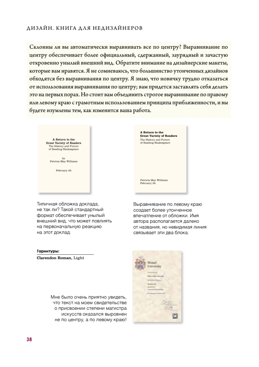 «Большинство, глядя на плохо оформленную страницу, скажут, что она им не нравится, однако они не знают, как ее исправить. Эта книга не заменит учебу в школе дизайна. Я не утверждаю, что после ее прочтения вы станете дизайнером. Но я ручаюсь, что вы больше никогда не будете смотреть на страницы, как раньше. Я гарантирую, что, если вы станете следовать этим базовым принципам, ваша работа будет выглядеть более профессиональной, цельной и интересной. И вы почувствуете, что ваши возможности стали шире». Робин Уильямс