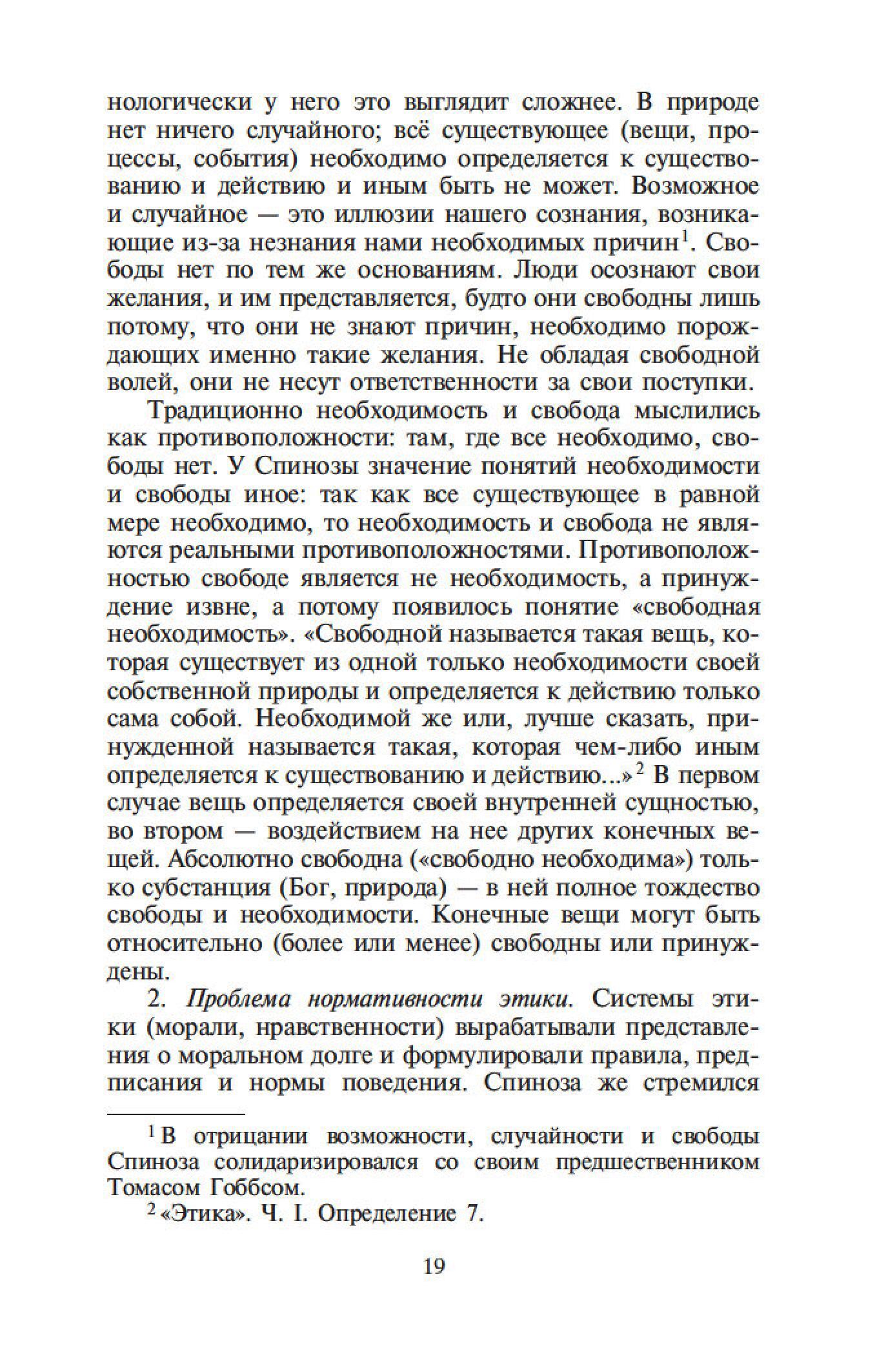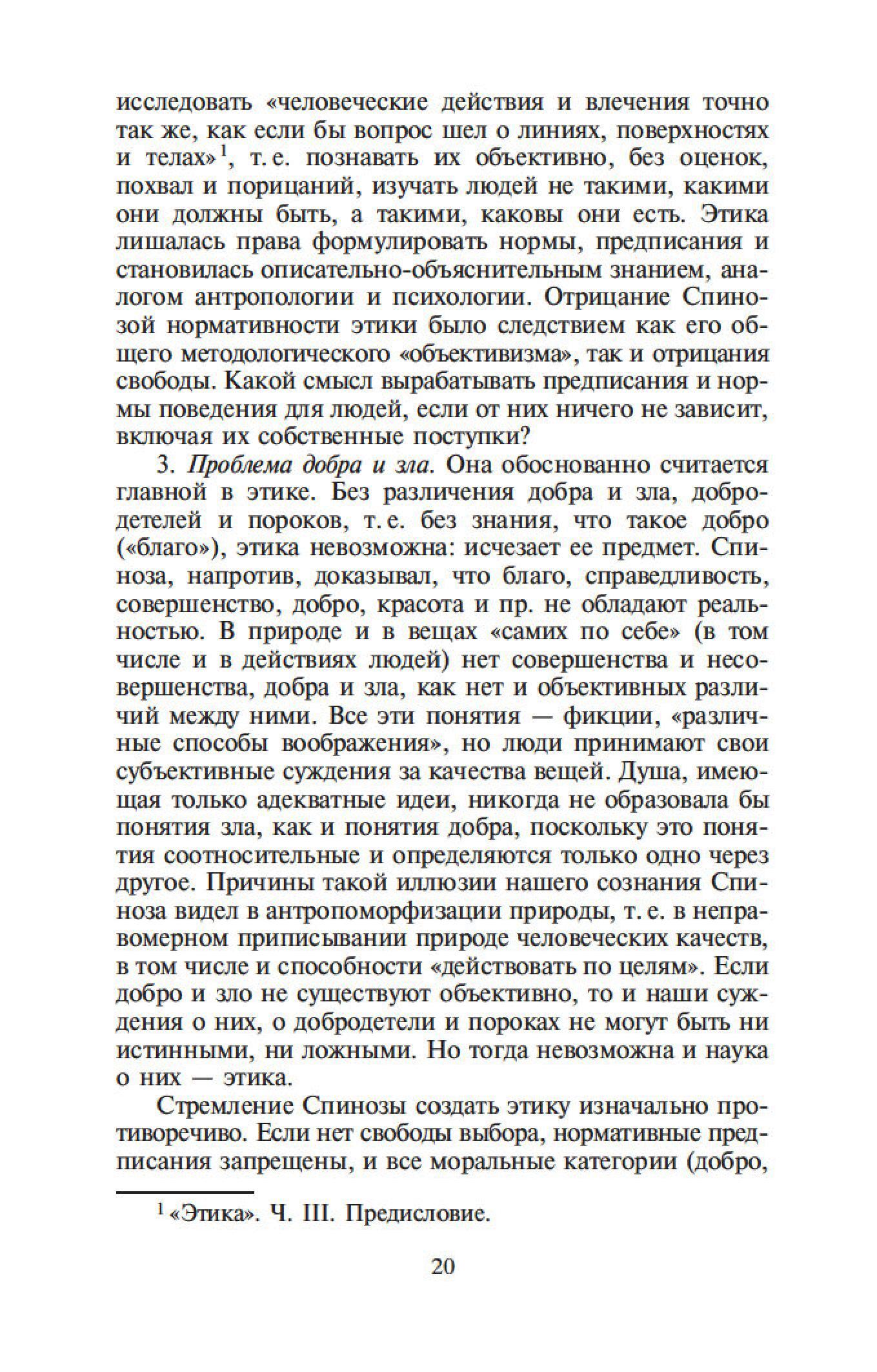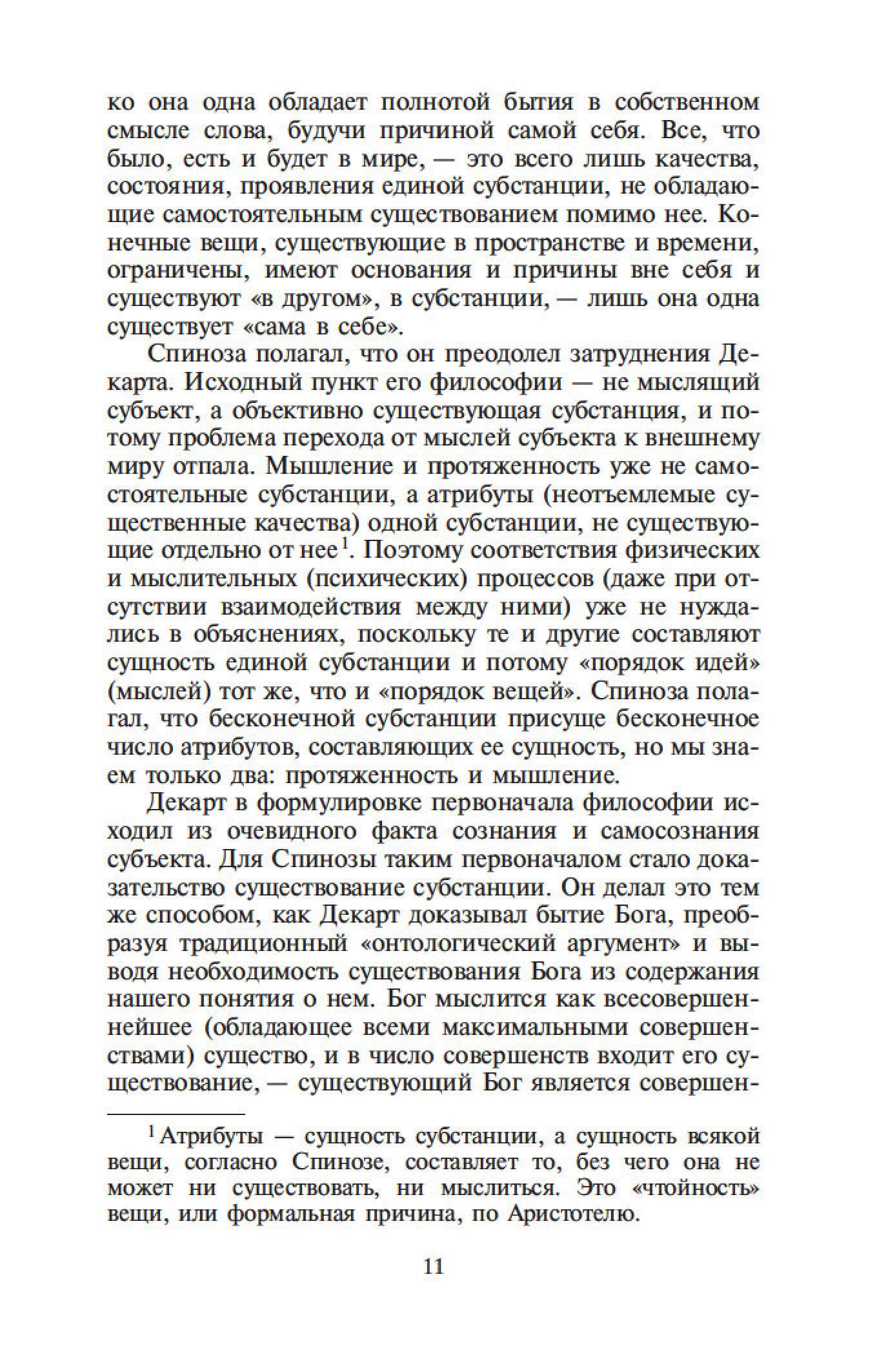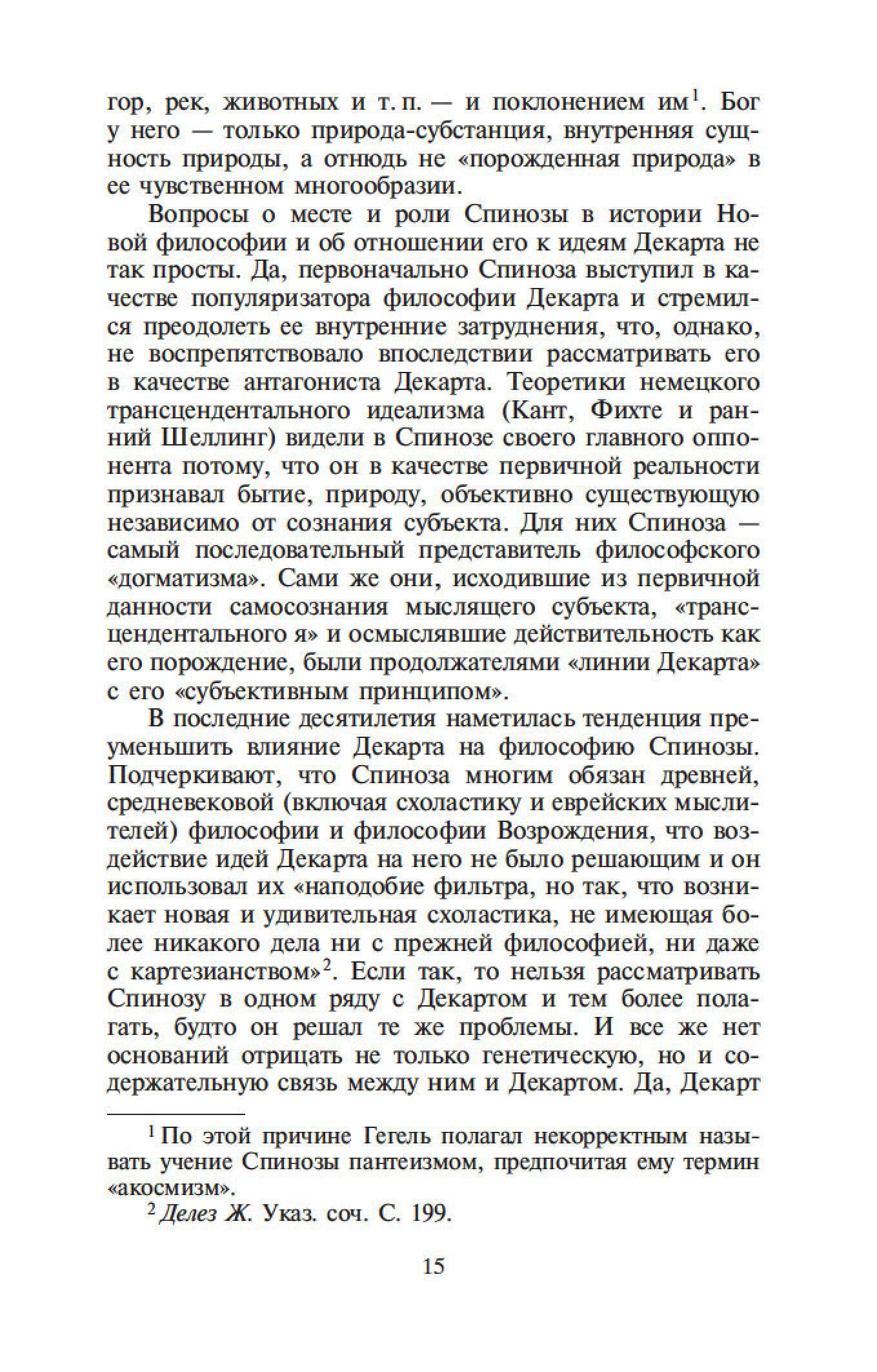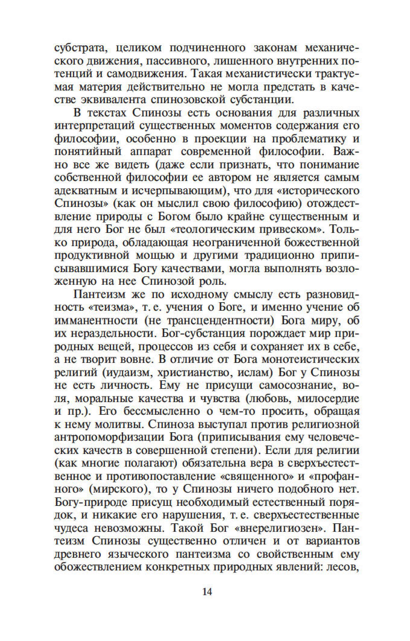 Бенедикт Спиноза — один из величайших философов-рационалистов. Его сочинения составляют эпоху в истории европейской мысли, и их изучение стало необходимым моментом всех учебных курсов по метафизике. Характерной чертой трактатов Спинозы является строгая последовательность мысли и четкая организация текста. Идеи Спинозы, особенно его центрального произведения, «Этики», оказали мощное воздействие на культуру XVII–XIX столетий: Спинозу любили, читали, толковали, с ним спорили не только такие философы, как Беркли, Юм, Шеллинг, Гегель, но и великие ученые, просветители, поэты — Дидро, Гередер, Гете.