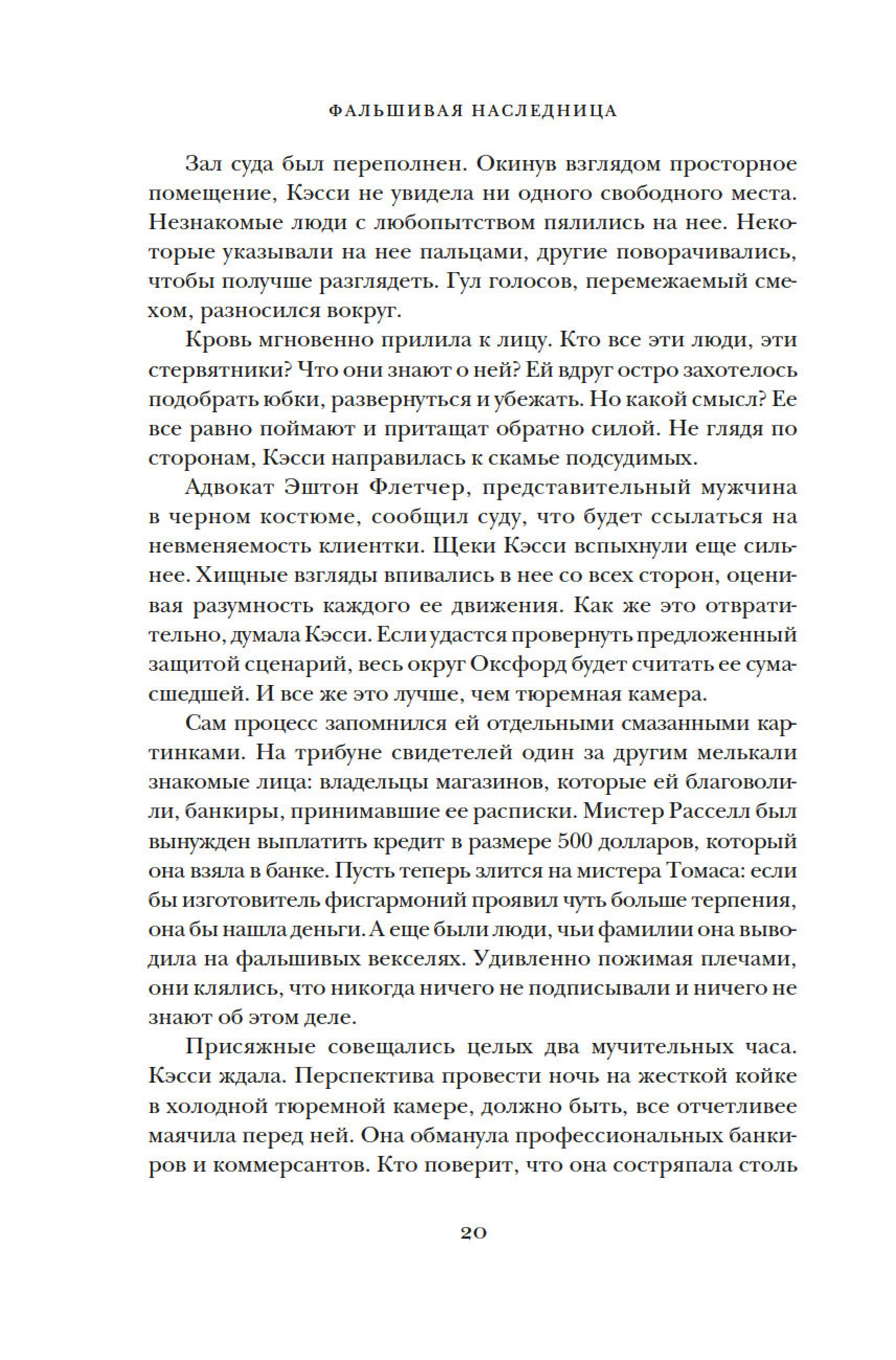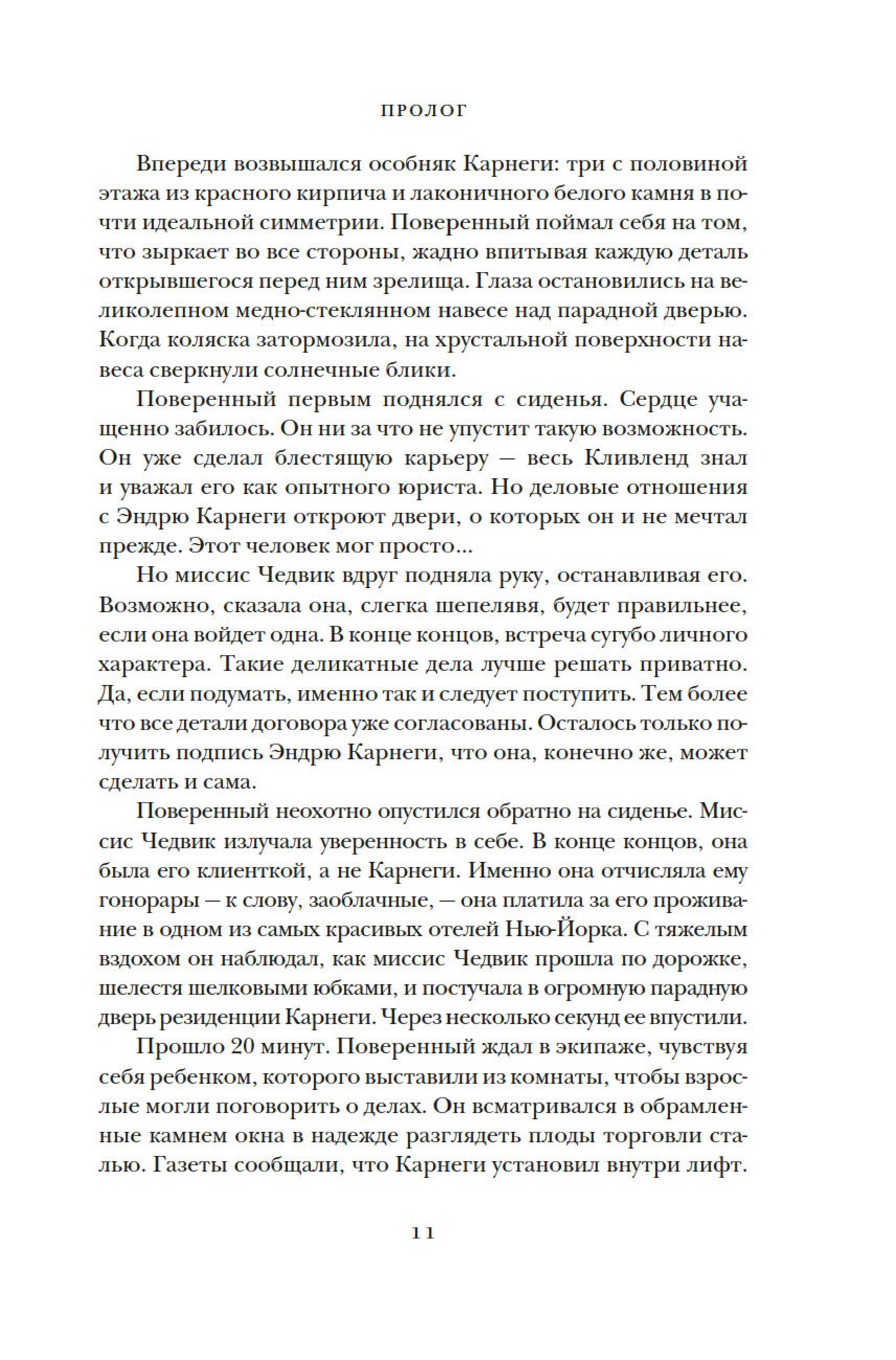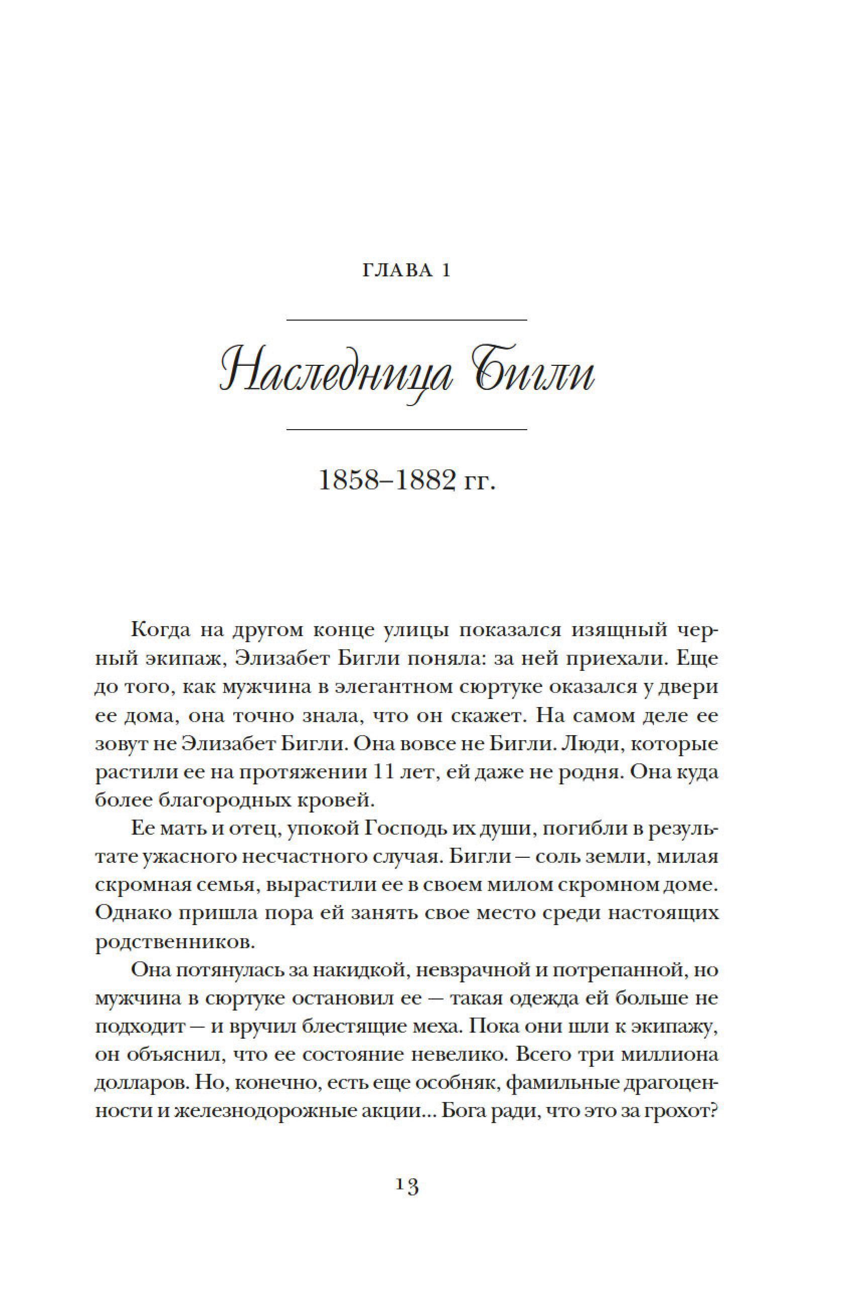 Элизабет Бигли, уроженка маленького городка в канадской провинции, в юном возрасте открыла в себе талант к убеждению и хитроумным выдумкам. Именно благодаря этой способности она станет одной из самых известных аферисток в истории. Меняя имена и придумывая новые уловки, Кэсси Чедвик смогла прожить 14 лет за счет кредитов, которые подкрепляла поддельными векселями, очаровывала одного банкира за другим и убеждала всех вокруг, что она дочь знаменитого Эндрю Карнеги. Книга писательницы Энни Рид рассказывает одну из самых захватывающих историй о жизни американского общества конца XIX века.