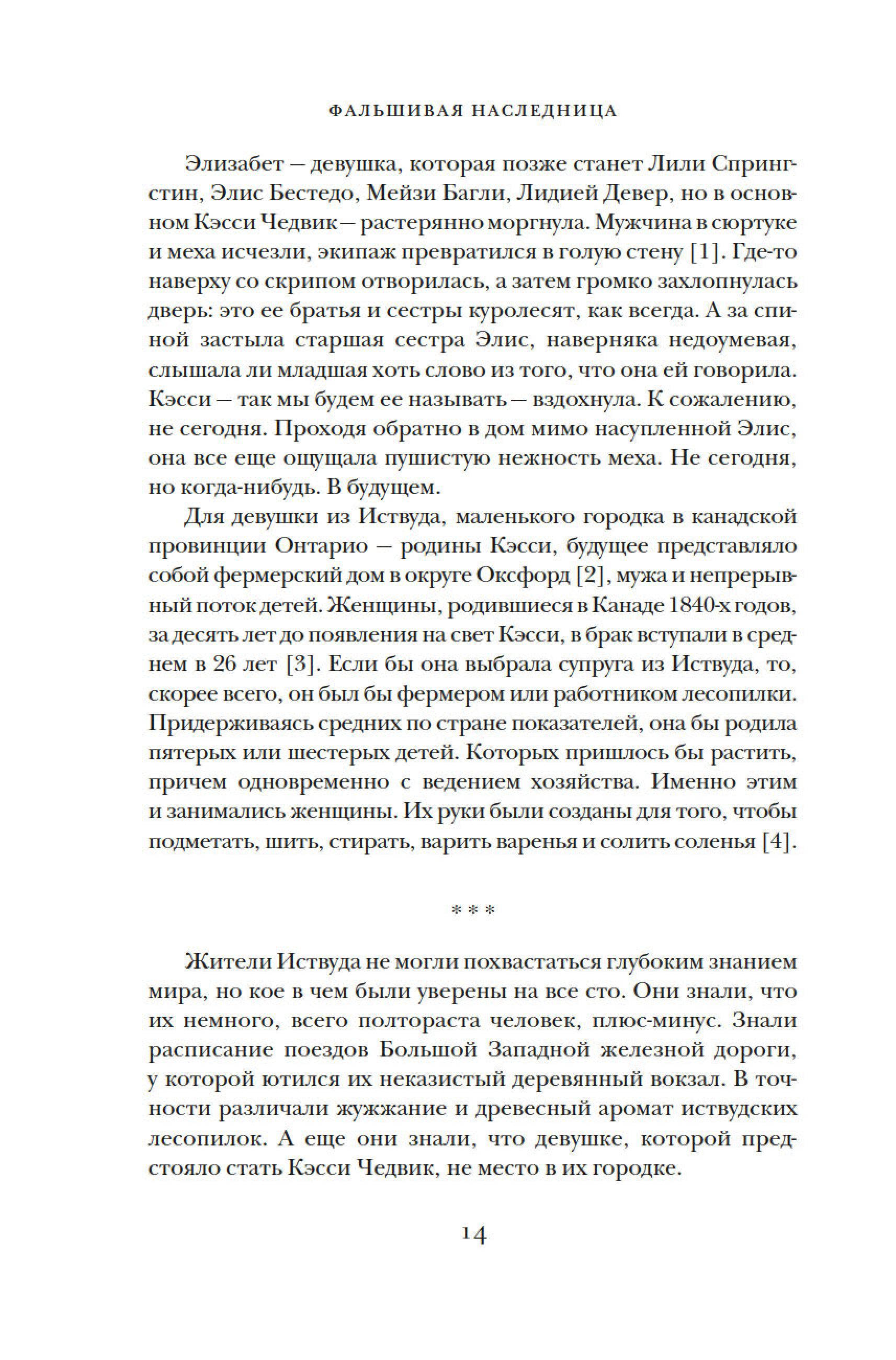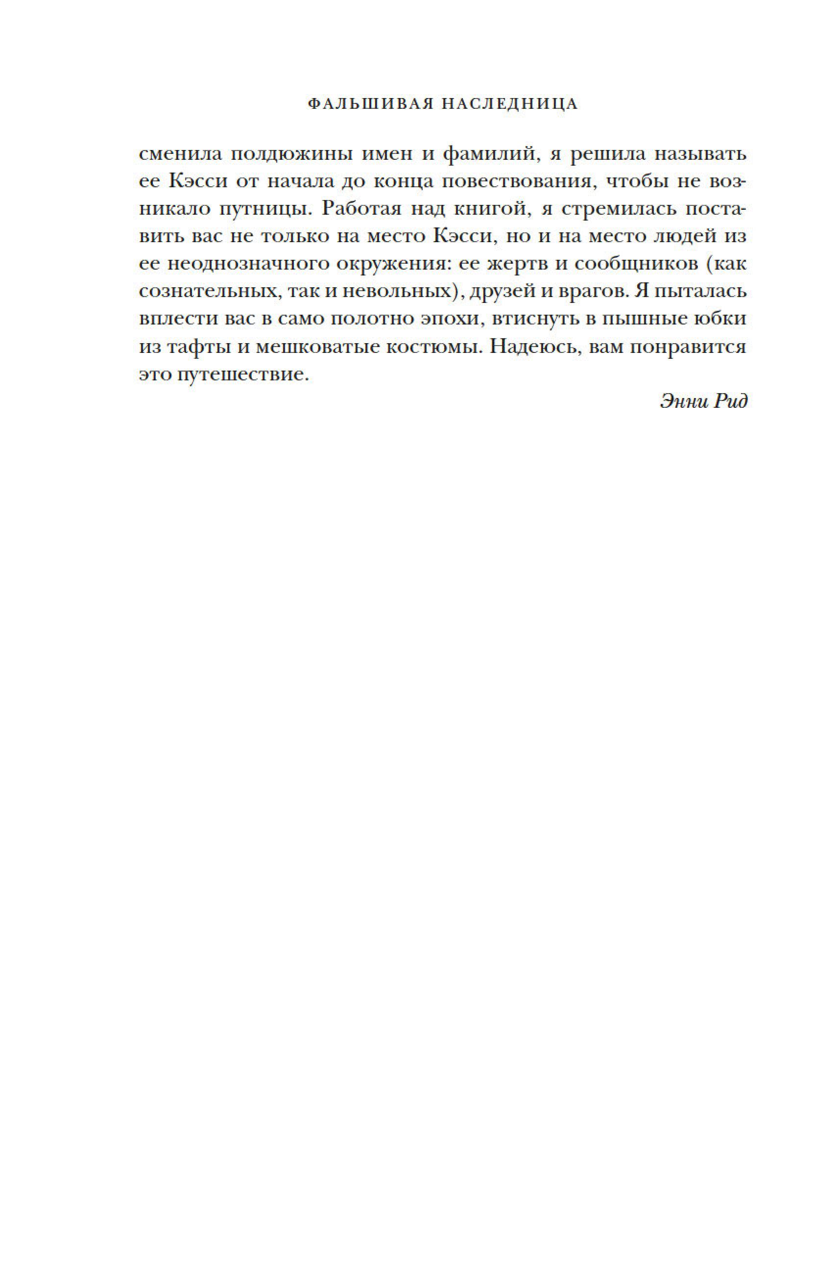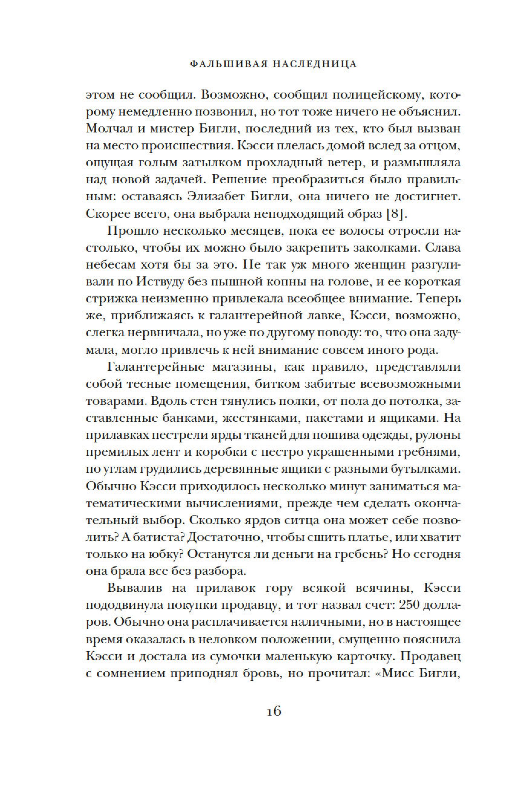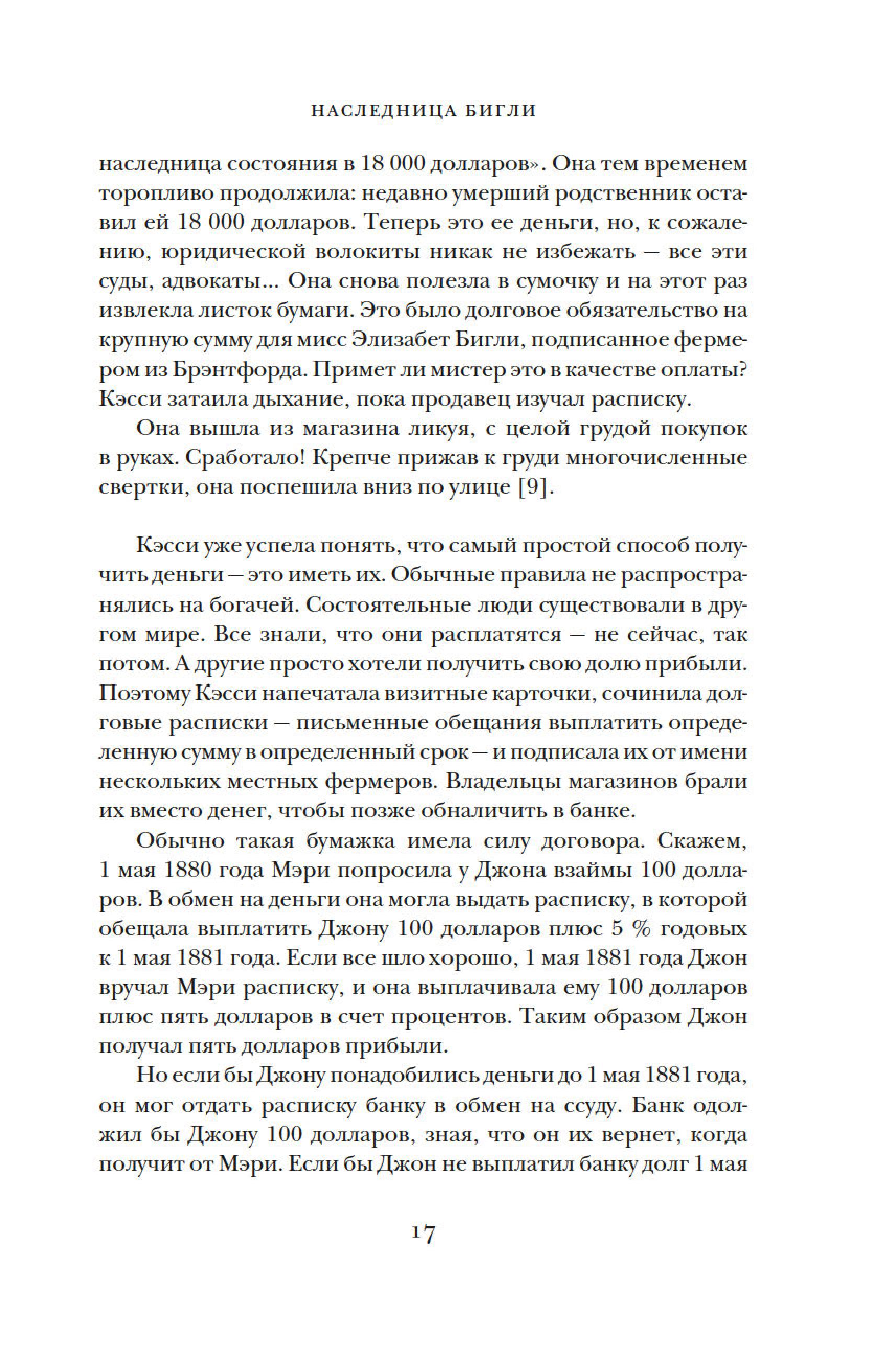 Элизабет Бигли, уроженка маленького городка в канадской провинции, в юном возрасте открыла в себе талант к убеждению и хитроумным выдумкам. Именно благодаря этой способности она станет одной из самых известных аферисток в истории. Меняя имена и придумывая новые уловки, Кэсси Чедвик смогла прожить 14 лет за счет кредитов, которые подкрепляла поддельными векселями, очаровывала одного банкира за другим и убеждала всех вокруг, что она дочь знаменитого Эндрю Карнеги. Книга писательницы Энни Рид рассказывает одну из самых захватывающих историй о жизни американского общества конца XIX века.