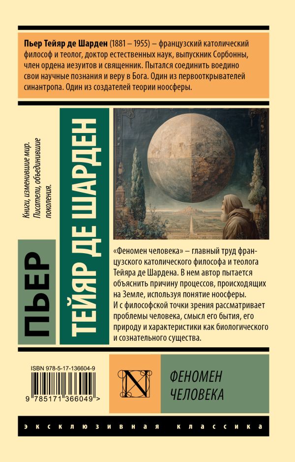 «Феномен человека» — главный труд французского католического философа и теолога Тейяра де Шардена. В нем автор пытается объяснить причину процессов, происходящих на Земле, используя понятие ноосферы. И с философской точки зрения рассматривает проблемы человека, смысл его бытия, его природу и характеристики как биологического и сознательного существа.