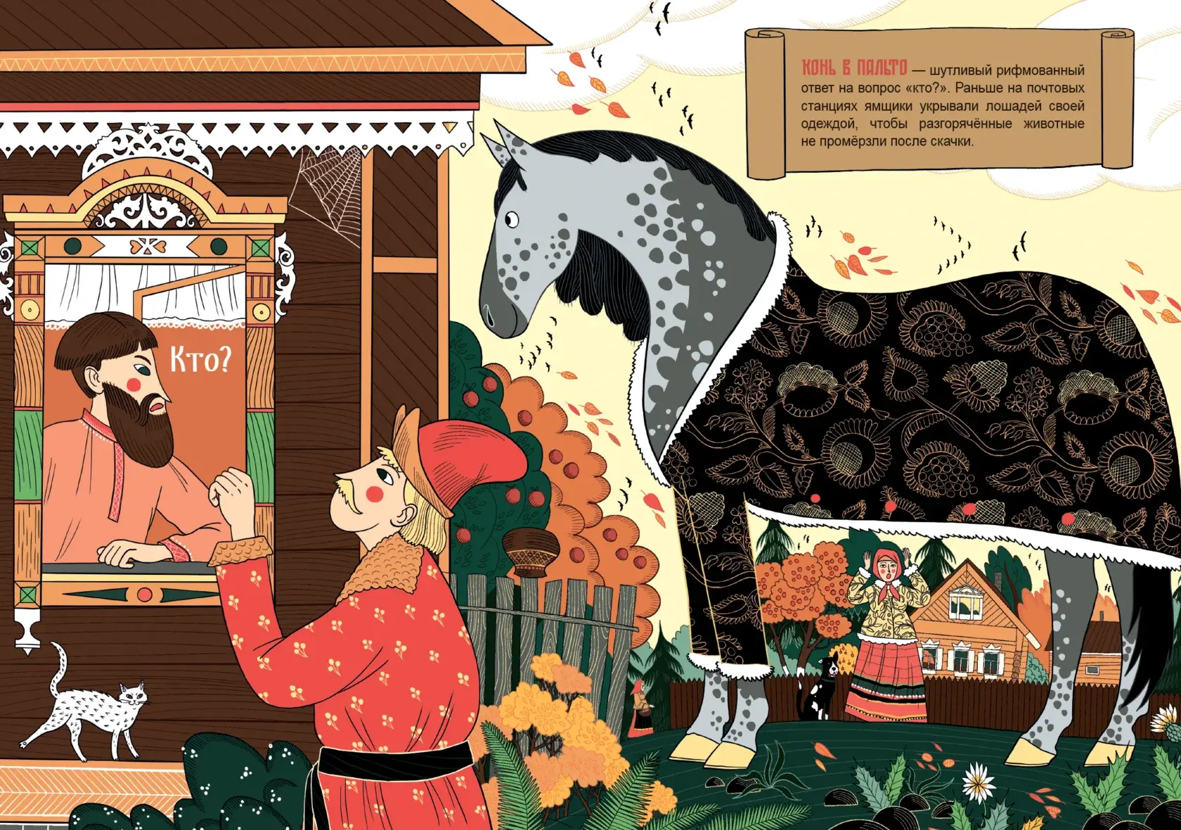 Книга Анастасии Смирновой «Где находится Кудыкина гора?» сочетает юмор, традиции и увлекательно рассказывает о русских пословицах и фразеологизмах. Красочные иллюстрации, вдохновлённые сказками, традиционными костюмами и старинной архитектурой, подчёркивают, что пословицы — неотъемлемая часть нашего наследия, как и народные сказания. В книге вы узнаете много нового о русском языке, его развитии и влиянии других культур, а также о легендах, которые передаются из поколения в поколение и живы по сей день.
