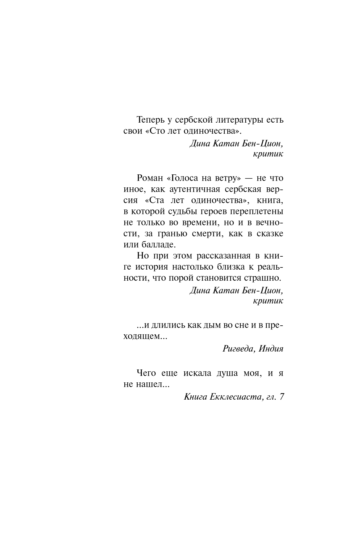«Голоса на ветру» — сербские «Сто лет одиночества». За этот роман Гроздана Олуич была номинирована на престижную премию журнала НИН, которую также получили Милорад Павич и Горан Петрович.