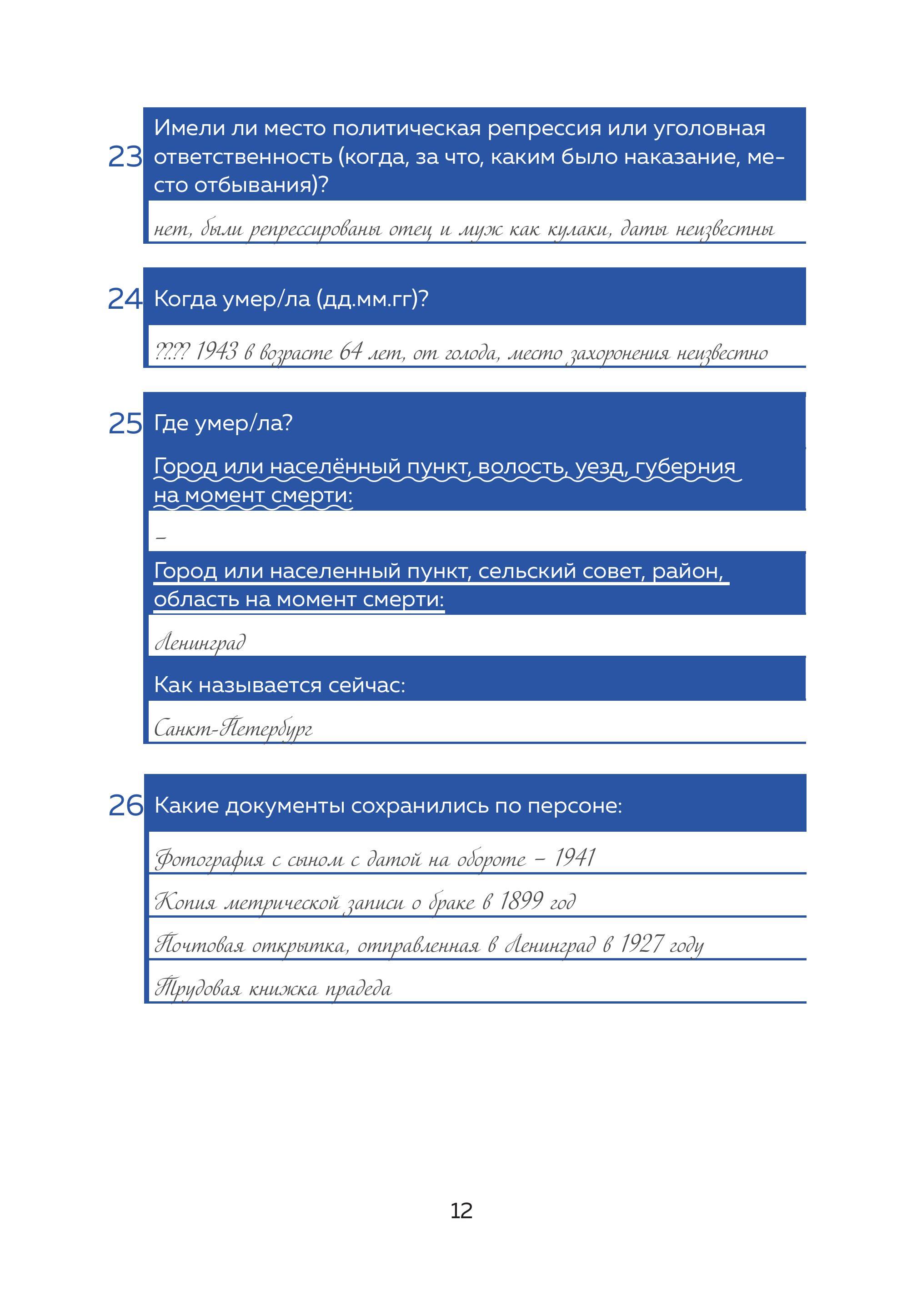 Уникальная методика Марии поможет: - Собрать и упорядочить информацию в анкетах: от опроса родственников до анализа архивных документов. - Оживить прошлое — не просто даты, а истории. Автор научит сопоставлять факты с событиями эпохи. - Найти «белые пятна» в истории семьи с помощью семейного древа. - Сохранить прошлое рода в удобном формате — все данные будут храниться под прочным твердым переплетом.