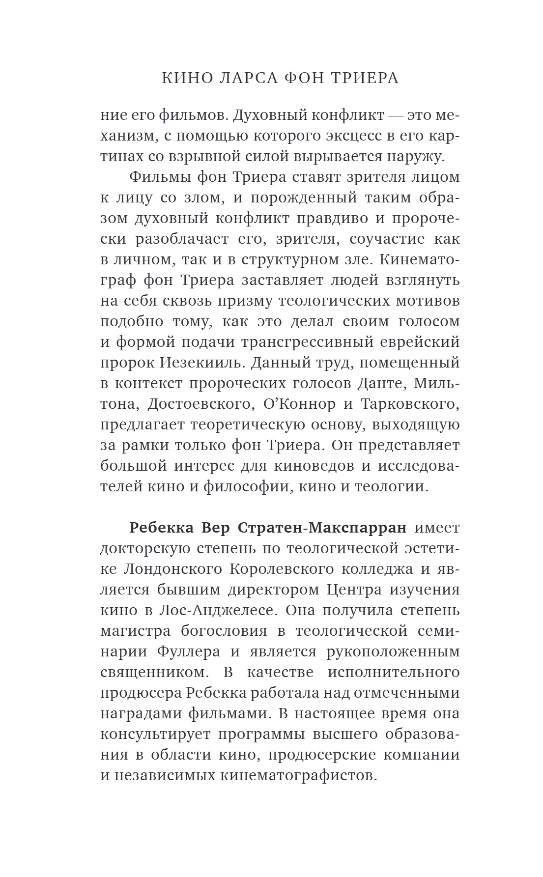 «Кино Ларса фон Триера: Пророческий голос» — это не книга для легкого чтения. Это интеллектуальный вызов, приглашение к серьезному разговору о кино как искусстве, способном определять наше восприятие реальности и заглядывать в будущее.