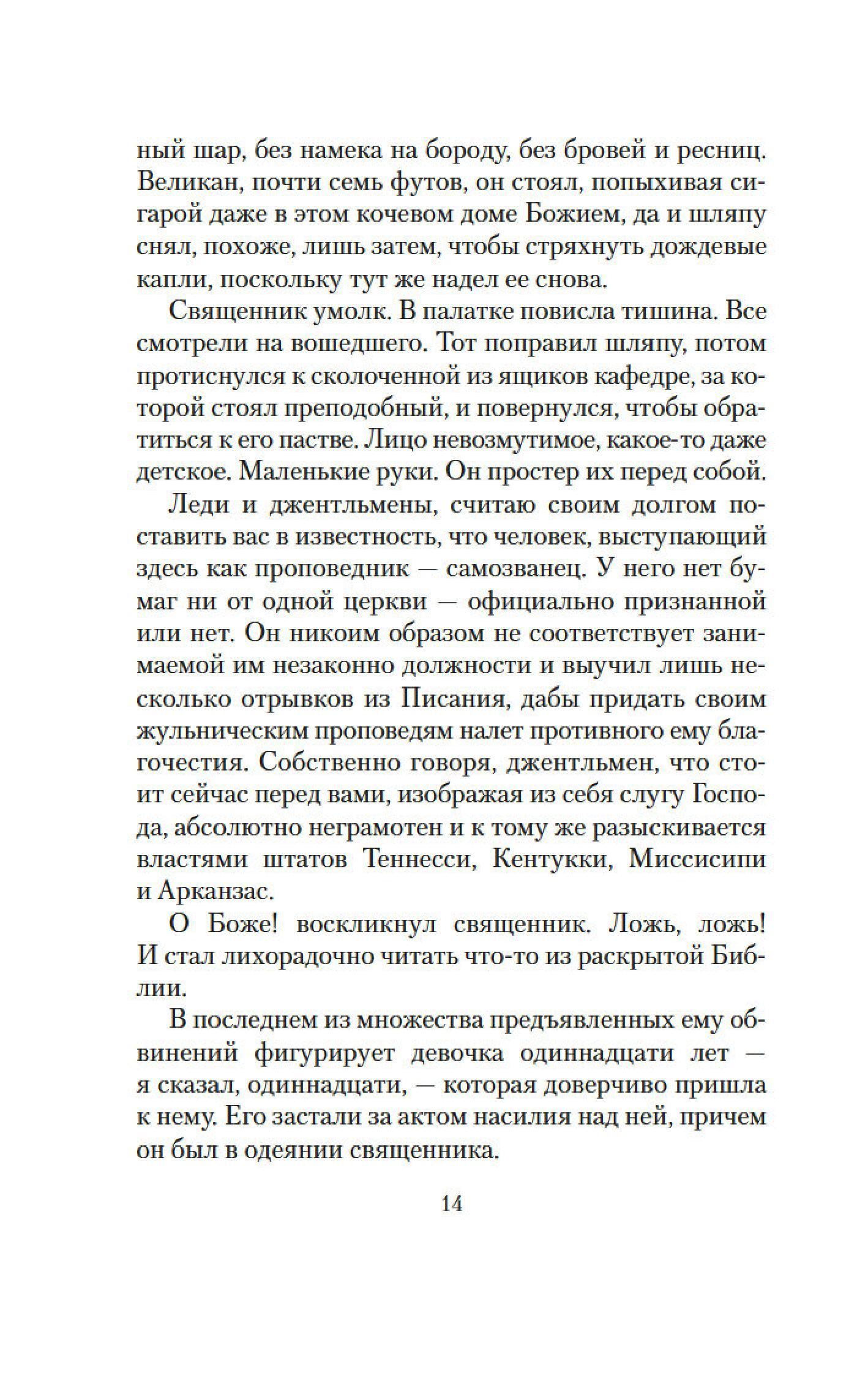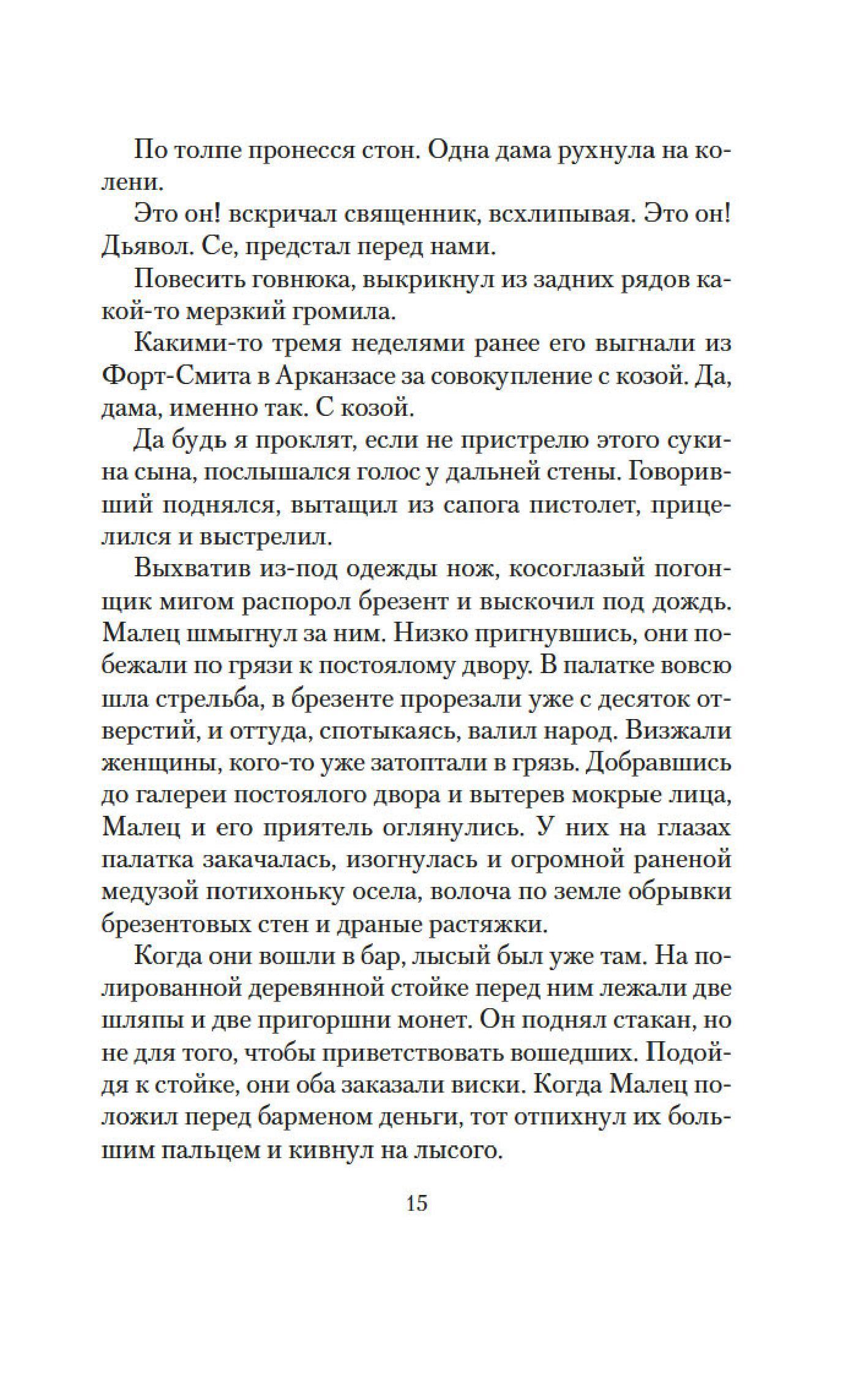 Кормак Маккарти — современный американский классик главного калибра, лауреат Макартуровской стипендии «За гениальность», мастер сложных переживаний и нестандартного синтаксиса, хорошо известный нашему читателю романами «Старикам тут не место» (фильм братьев Коэн по этой книге получил четыре «Оскара»), «Дорога» (получил Пулицеровскую премию и также был экранизирован) и «Пограничной трилогией» (первый роман которой, «Кони, кони...», получил Национальную книжную премию США и был перенесен на экран Билли Бобом Торнтоном, главные роли исполнили Мэтт Деймон и Пенелопа Крус).