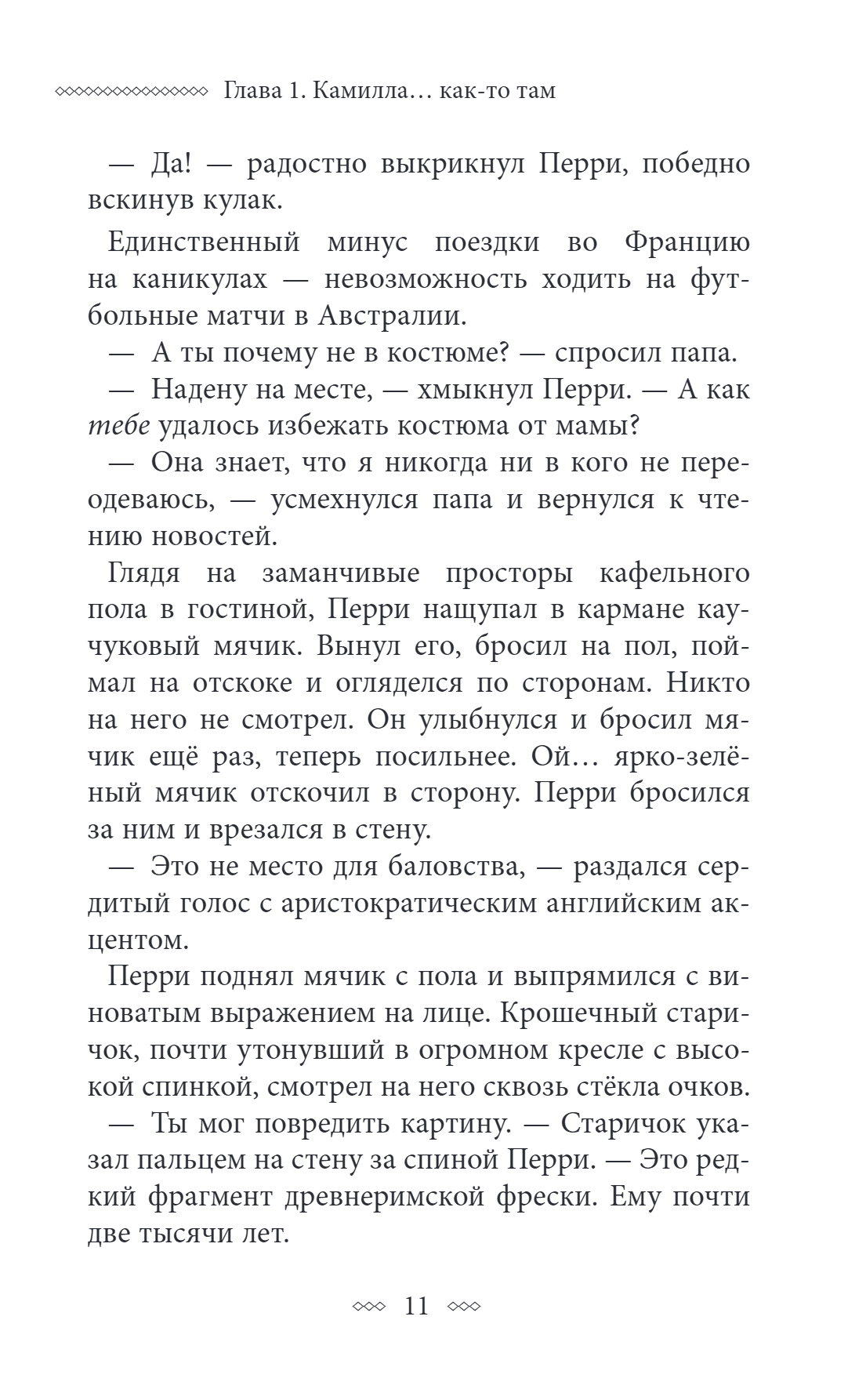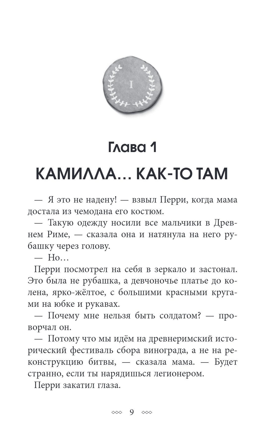 Двенадцатилетний Перри приехал вместе с семьей на исторический фестиваль, но стоило сделать шаг на руины виллы времен Южной Галлии — и его перенесло в IV век Древнего Рима! Все вокруг ходили в тогах и разговаривали на латыни… Как быть? Перри представился Перегринием и стал вживаться в роль раба. Познакомившись с Валентией, дочкой хозяина виллы, мальчик задумался: почему имя ровесницы кажется ему знакомым? Перри нужно решить: утолить любопытство, но задержаться в Древнем Риме, или скорее вернуться домой?