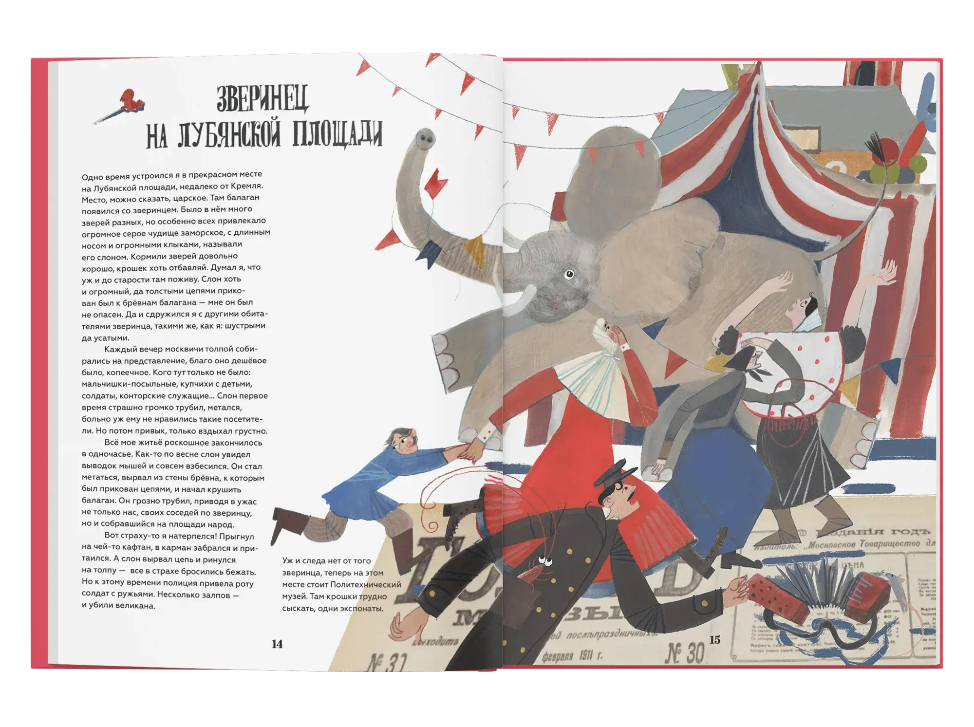 Старая Москва помнит много занимательных и поучительных историй — про слона и крокодила, про петушиные бои, про фалатора и бабу с калачом, про ландринки, филипповские булочки и елисеевские пирожки. А еще про хитрованцев и Венеру Милосскую, про пожарные каланчи и бани, и даже про привидения… Все эти истории в свое время собрал знаменитый дядя Гиляй — Владимир Гиляровский, известный всем репортер, автор очерков «Москва и москвичи». Однако наша новая книга — не просто рассказ о старой Москве Гиляровского, она с изюминкой: главный её герой — таракан, маленький и незаметный соратник дяди Гиляя, описавший московскую жизнь, увиденную им из кармана известного репортёра.