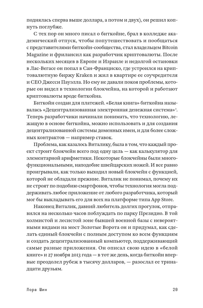 В 2013 году Ethereum был всего лишь фантазией девятнадцатилетнего студента Виталика Бутерина, который жил в комнатке, похожей на тюремную камеру, и писал статьи для журнала Bitcoin Magazine. Сегодня это экосистема стоимостью 240 миллиардов долларов, ставшая основой всех крупных блокчейн-трендов. Если биткойн — золото криптовалютного мира, то Ethereum — его нефть.