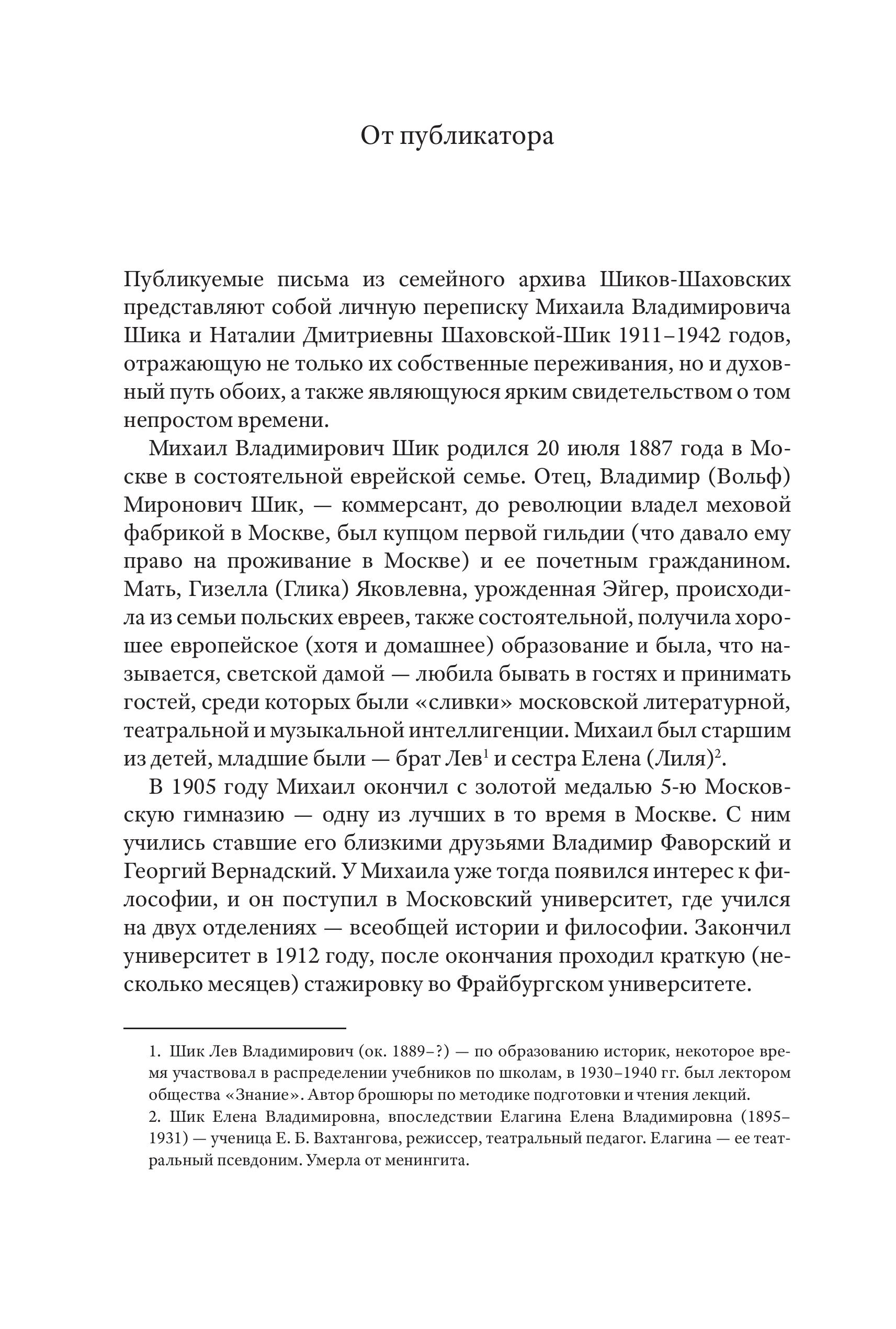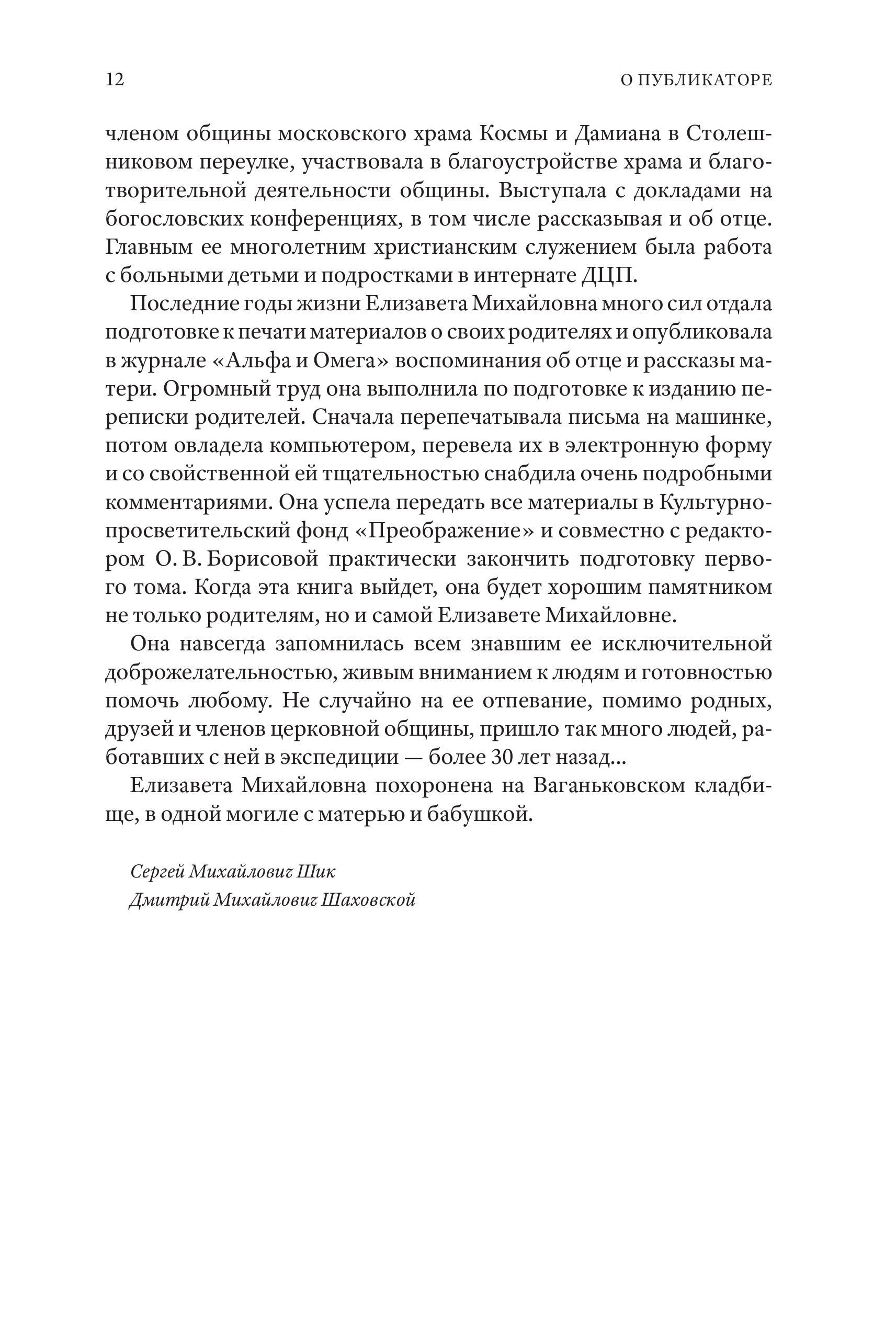 Том 1. В книге впервые публикуются личные письма Михаила Владимировича Шика (с 1927 г. – священника русской православной церкви) и Наталии Дмитриевны Шаховской (в замужестве Шаховской-Шик). Их переписка 1911 – 1926 годов бережно хранилась в семейном архиве, так же как и дневниковые записи, сделанные дьяконом Михаилом во время этапирования в Турткуль, куда он был сослан по обвинению в участии в деле митрополита Петра (Полянского).