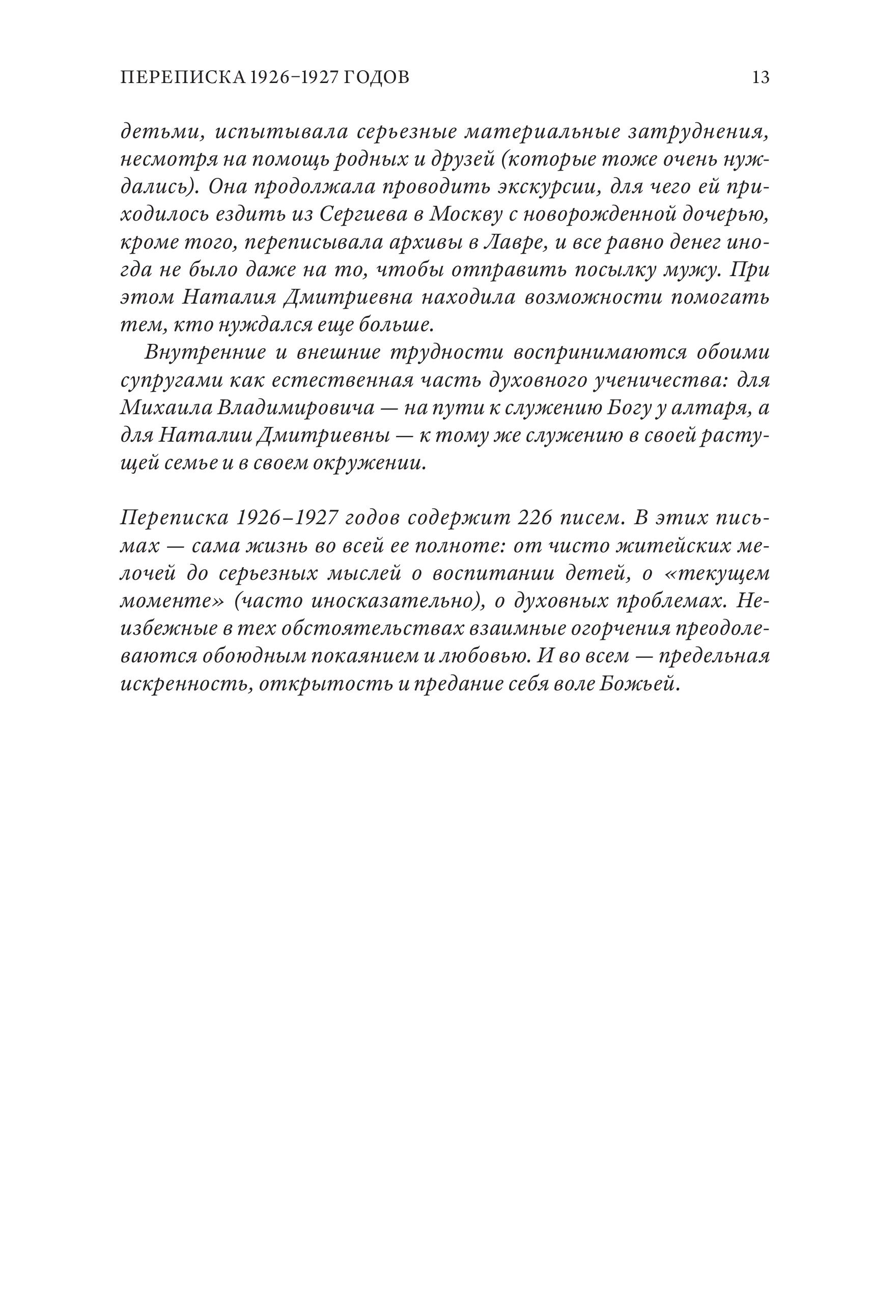 Письма отражают личные переживания авторов, их непросто складывавшиеся отношения, обретение смысла семейной жизни, неотделимой от жизни страны и церкви. Письма позволяют проследить духовный путь двух незаурядных личностей, думающих, образованных, укорененных в мировой культуре, обретающих в личных и исторических испытаниях опыт верности Богу, любви ко Христу, подлинного смирения.