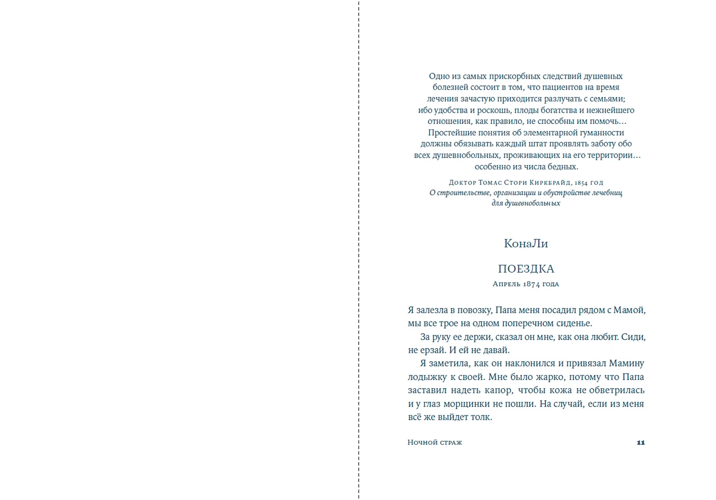 Америка, 1874 год. На дорогах еще недавно охваченной Гражданской войной страны пересекаются судьбы мирных жителей и солдат, бродяг и беглецов. Двенадцатилетняя КонаЛи вынуждена отправиться в путь с матерью, которая не разговаривает уже больше года. Выдавая себя за леди и служанку, они находят убежище в лечебнице для душевнобольных. Покой обитателей в этих стенах оберегает израненный, потерявший память солдат — Ночной Страж.