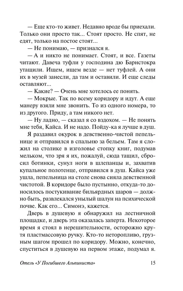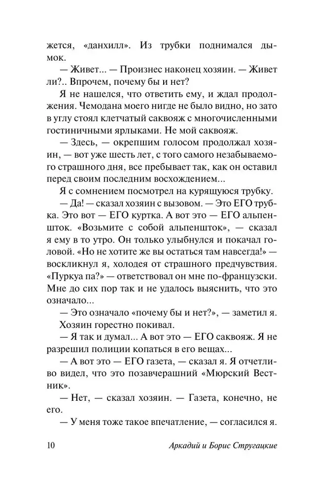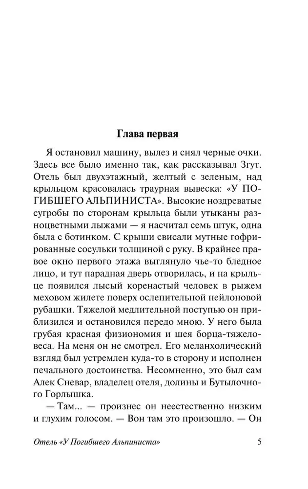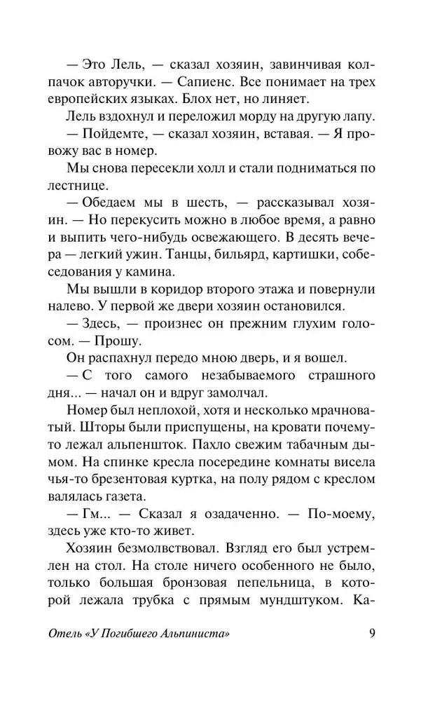 «Отель „У погибшего альпиниста“» — одно из самых ярких произведений раннего периода творчества братьев Стругацких, увлекательный научно-фантастический детектив, в котором немолодой усталый полицейский, расследующий загадочное преступление в занесенном снегом горном отеле, оказывается втянутым в сложную и таинственную историю с «чужими», высадившимися на Земле и творящими то ли добро, то ли зло...