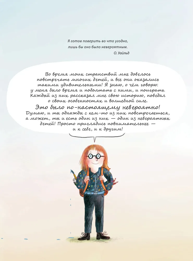 Эта книга идеально подойдет для детей с богатой фантазией и тем, кто любит красочные иллюстрации. А родители будут рады найти среди всех описанных детей того, на кого похож их ребёнок.