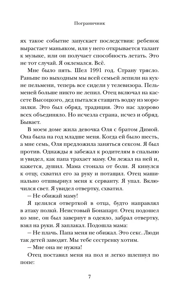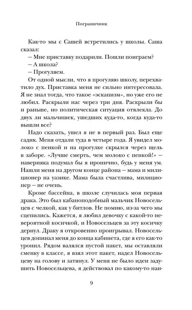 В новом романе «Пограничник» Селуков, как всегда, удивляет предельной честностью и глубиной погружения в природу отдельно взятого человека. Герой его осваивает мир, как принято говорить, путем проб и ошибок — и те, и другие порой оборачиваются настоящим кошмаром. Но тем интереснее следить за его траекторией.