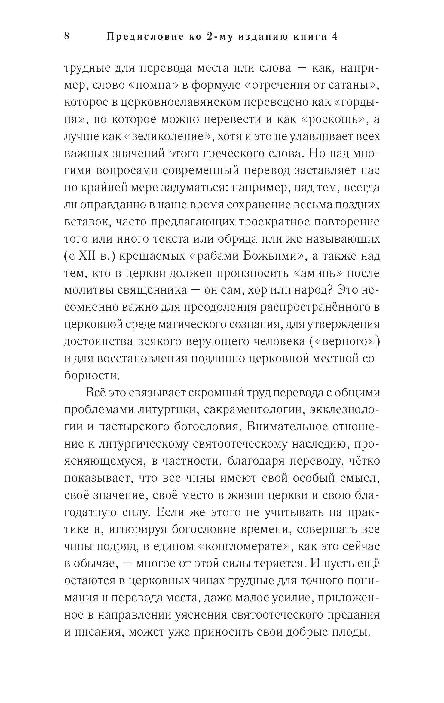 Издание подготовлено в московском Свято-Филаретовском православно-христианском институте проф.-свящ. Георгием Кочетковым с группой филологов. Эти переводы являются плодом многолетней научно-богословской и духовно-педагогической работы. Они выполнены с греческих и славянских источников. Они целиком ориентированы на существующую в Русской православной церкви традицию и могут служить уникальным пособием не только для студентов-богословов и катехизаторов, но и для всех ищущих полноты духа и смысла в богослужении христианской православной общины.