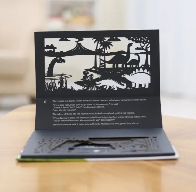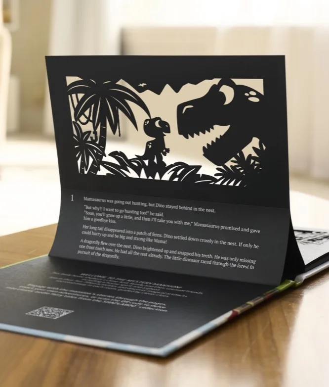 Уникальная, запатентованная конструкция, которая при открытии книги приводит страницы в вертикальное положение — идеально для теневого представления. Поставьте книгу на стол, на кровать или даже на колени — ей удобно пользоваться в в любом положении!
