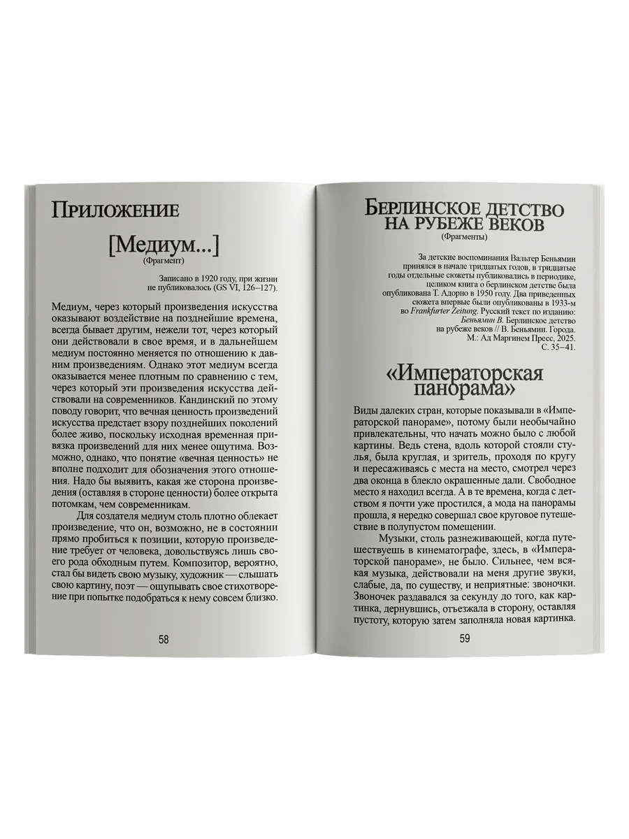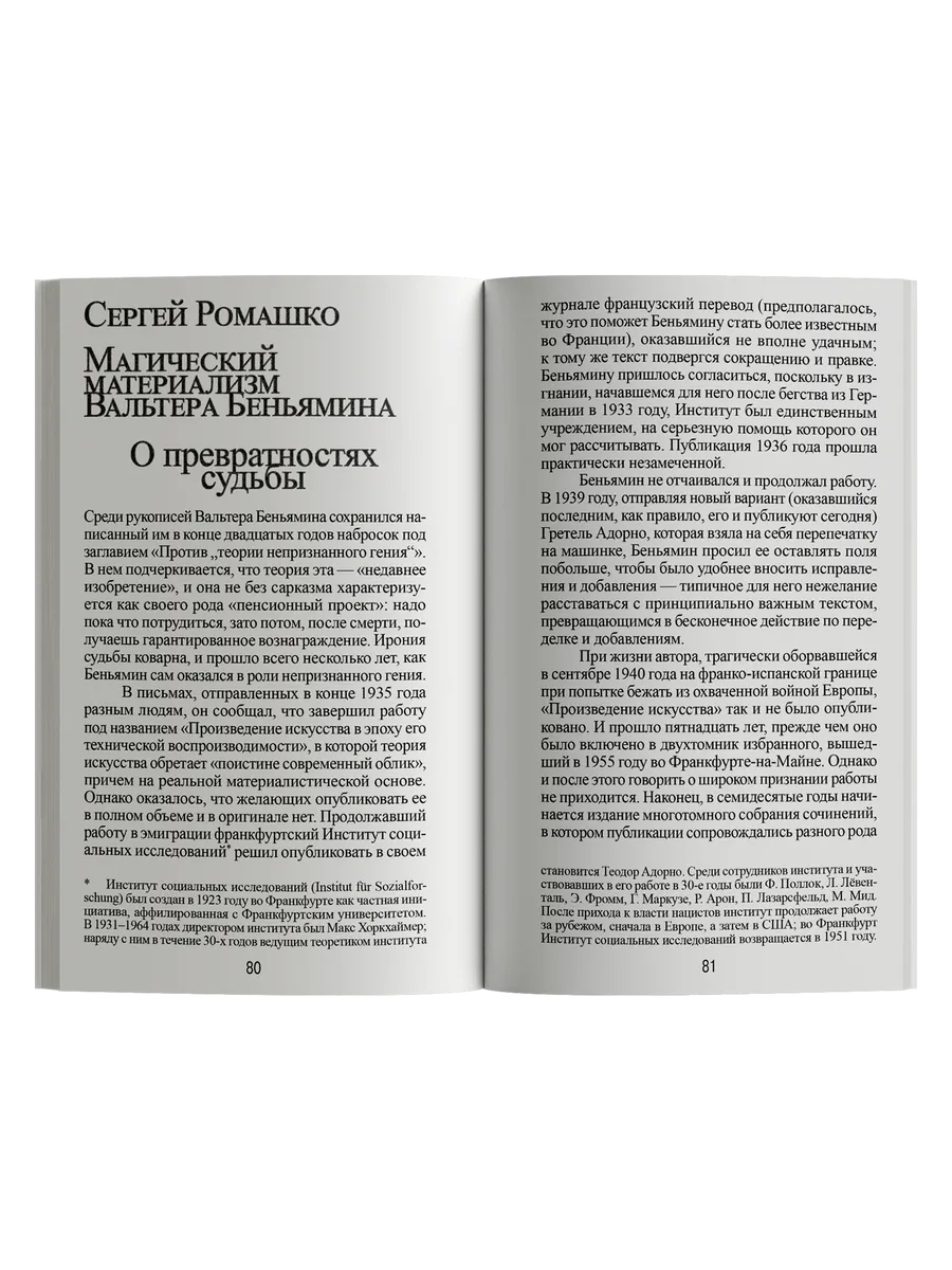 В момент, когда Беньямин писал это, становление новых медиа только обозначилось, и сам факт выведения на первый план техники создания и передачи разного рода сообщений как существенного фактора изменений в разных областях жизни и деятельности был смелым шагом. Это было настолько ново, что наталкивалось на непонимание. Сегодня такое нелегко себе представить, потому что слово «медийный» уже вошло в наш базовый словарь. Тогда и слова такого еще не было. Поэтому трудно переоценить сделанное этим своеобычным и упрямым человеком.