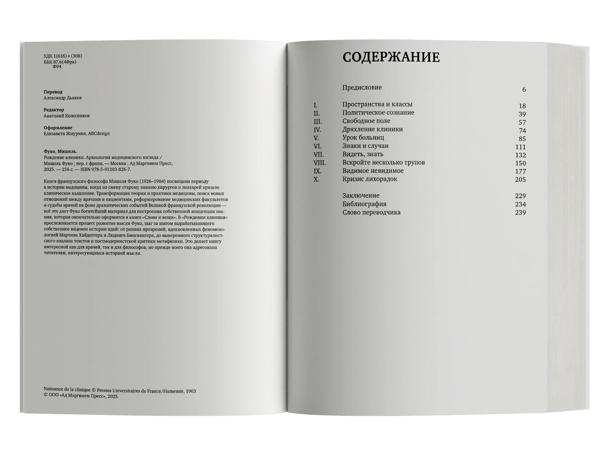 Книга французского философа Мишеля Фуко (1926–1984) посвящена периоду в истории медицины, когда на смену старому знанию хирургов и знахарей пришло клиническое мышление. Трансформация теории и практики медицины, поиск новых отношений между врачами и пациентами, реформирование медицинских факультетов и судьбы врачей на фоне драматических событий Великой французской революции — всё это дает Фуко богатейший материал для построения собственной концепции знания, которая окончательно оформится в книге «Слова и вещи». В «Рождении клиники» прослеживается процесс развития мысли Фуко, шаг за шагом вырабатывающего собственное ви́дение истории идей: от ранних прозрений, вдохновленных феноменологией Мартина Хайдеггера и Людвига Бинсвангера, до выверенного структуралистского анализа текстов и постмодернистской критики метафизики. Это делает книгу интересной как для врачей, так и для философов, но прежде всего она адресована читателям, интересующимся историей мысли.