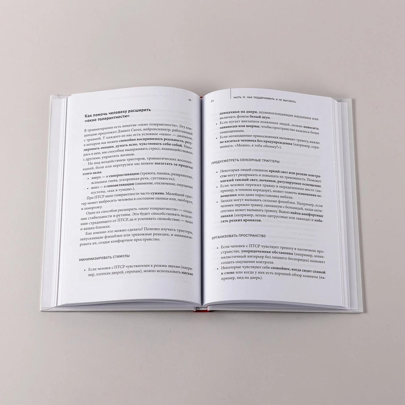 Главная ценность этой книги — практические решения для тех, кто сталкивается с последствиями травмы у близкого, будь то диагностированное ПТСР после тяжелых событий, комплексная травма, семейные или военные происшествия. Клинический психолог Дарья Яушева практикует в доказательном подходе схема-терапии и в своей работе подробно разбирает, какие изменения происходят с человеком, через какие стадии проходит семья и почему советы в духе «держись, тебе просто нужно время» не помогают.