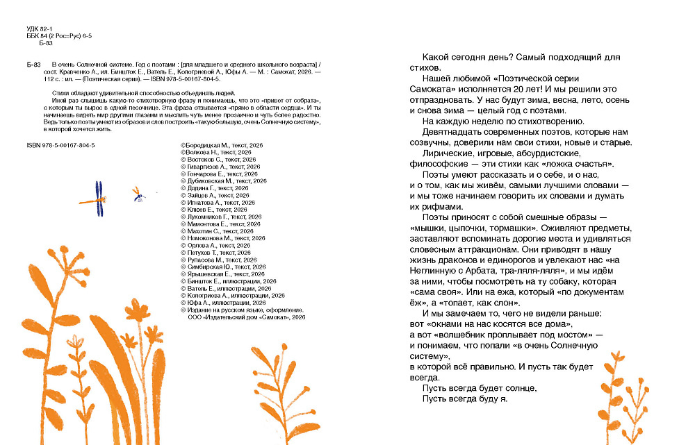 Поэты приносят с собой смешные образы — «мышки, цыпочки, тормашки». Оживляют предметы, заставляют вспоминать дорогие места и удивляться словесным аттракционам. Они приводят в нашу жизнь драконов и единорогов и увлекают нас «на Неглинную с Арбата, тра-ля-ля-ля-ля», и мы идём за ними, чтобы посмотреть на ту собаку, которая «сама своя». Или на ежа, который «по документам ёж», а «топает как слон».