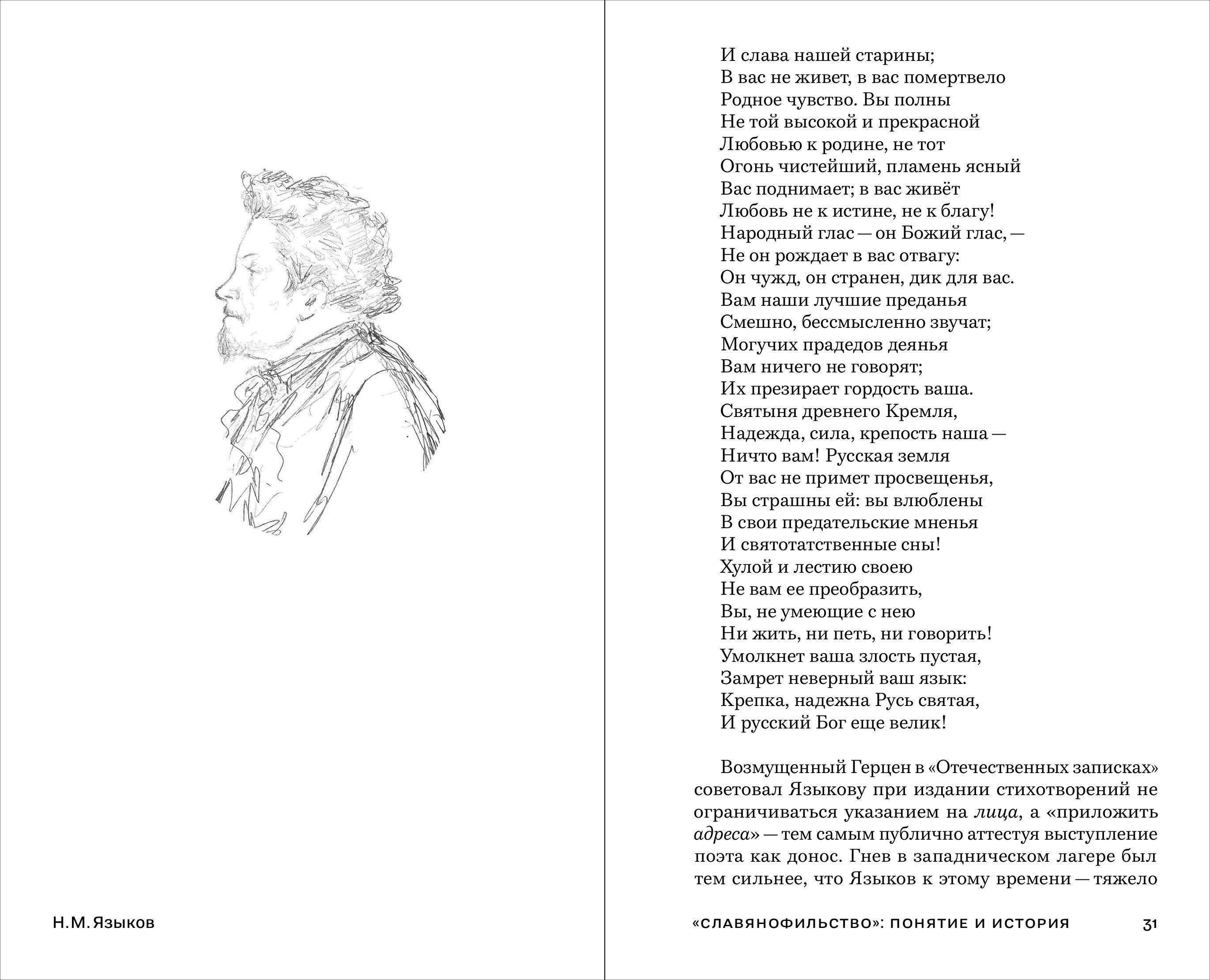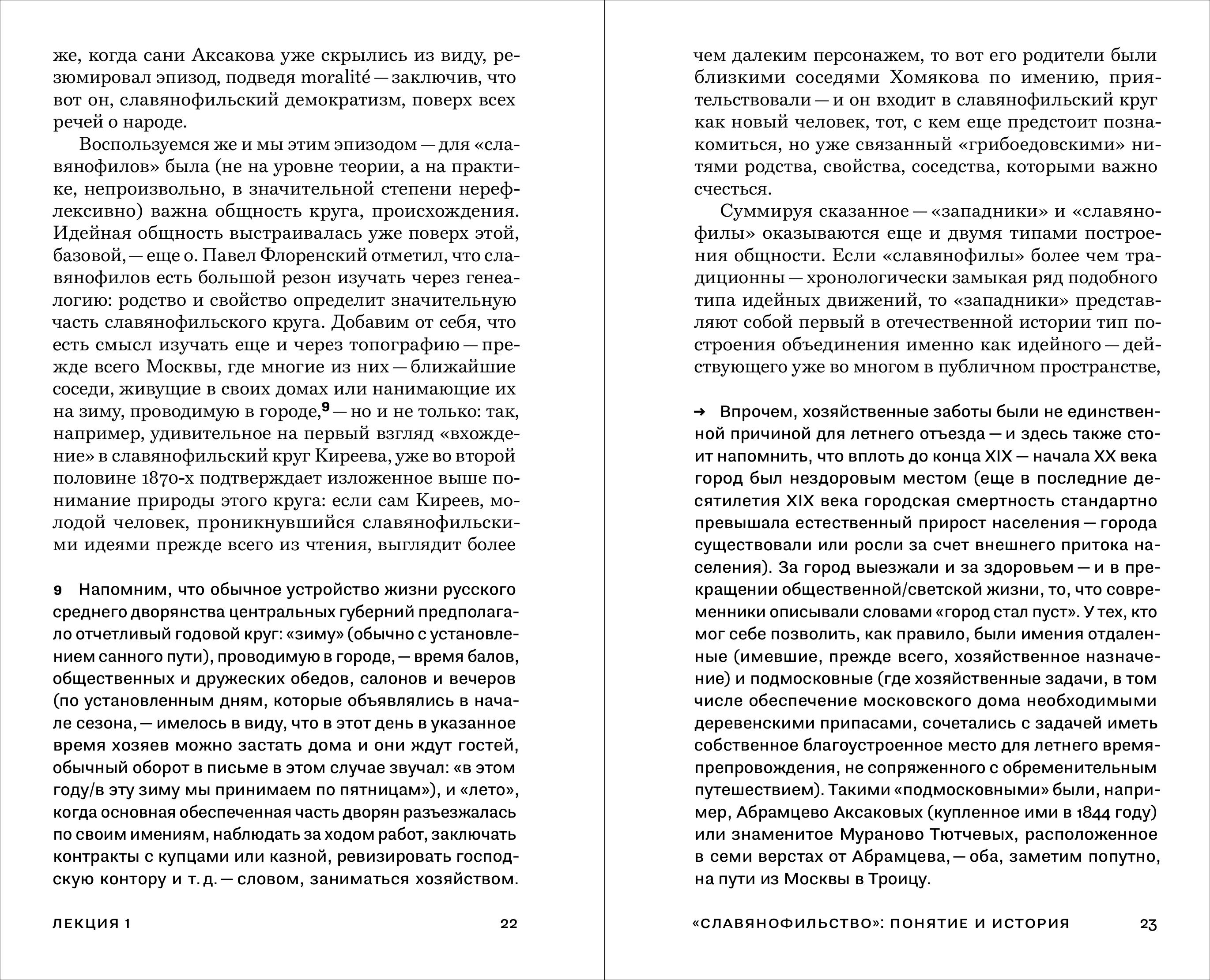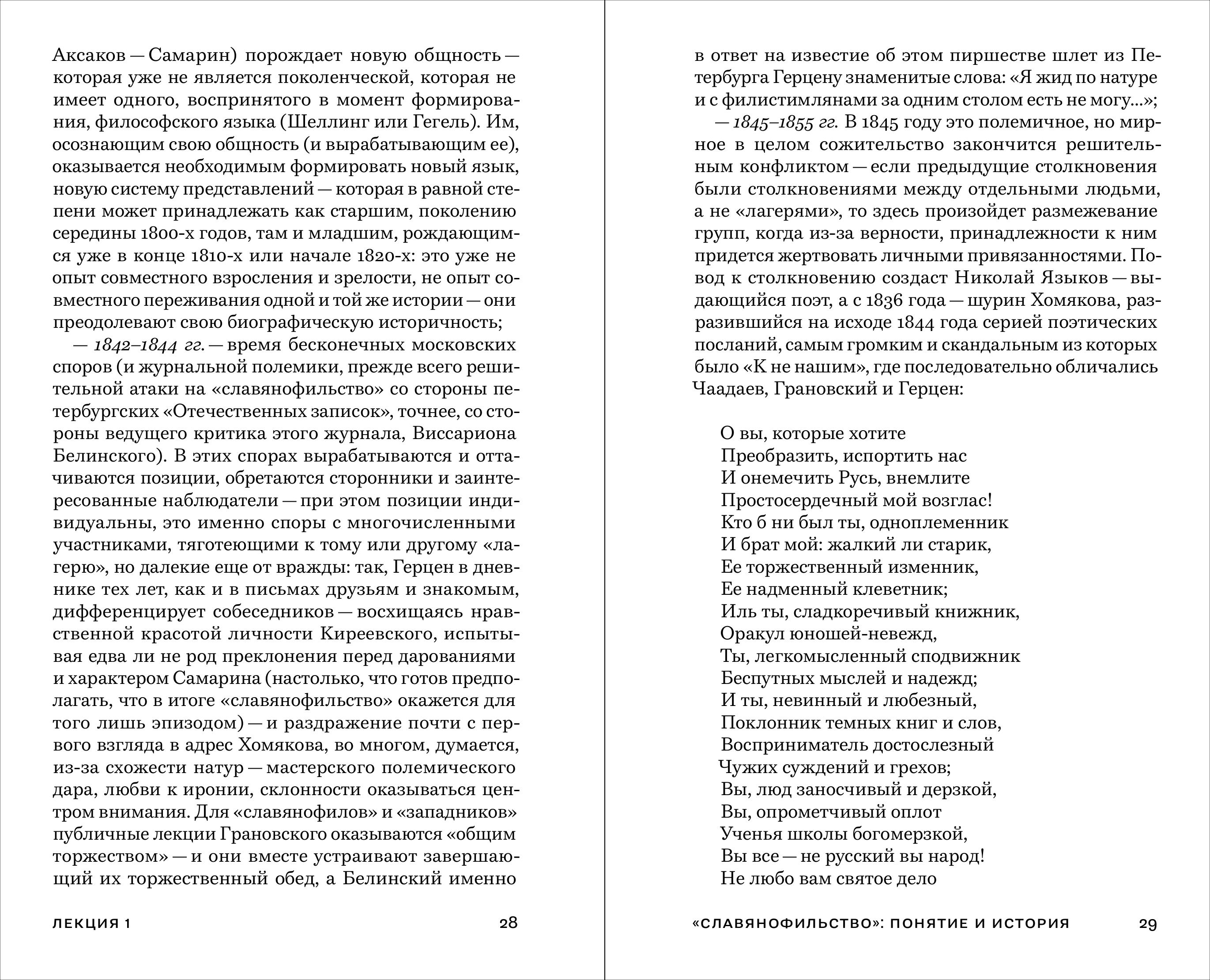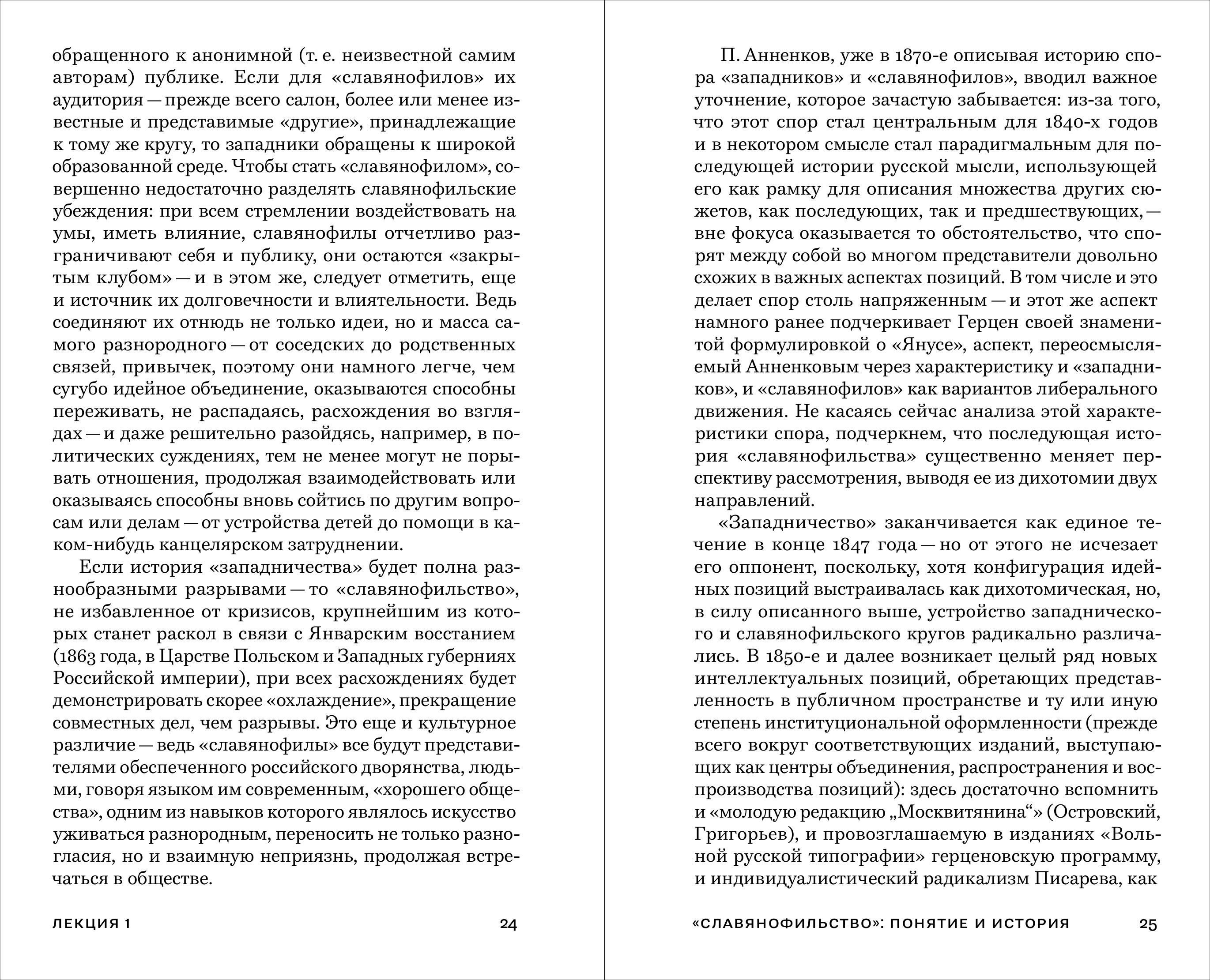 «Славянофилы, прежде всего, — маленький кружок людей. У Ключевского в «Записных книжках», кажется, в пору его работы над материалами к биографии кн. Черкасского, есть заметка – что все славянофилы легко поместились бы на одном диване. … Но в том числе и именно потому, что славянофилы – маленький кружок, это делает их голоса очень отличными друг от друга: они не сливаются в массу, не оказываются каким-то «движением», которое легко описать через идеи одного-двух лидеров направления – при своей малочисленности каждый из них обладает не только своей интонацией, но и собственным складом мыслей».