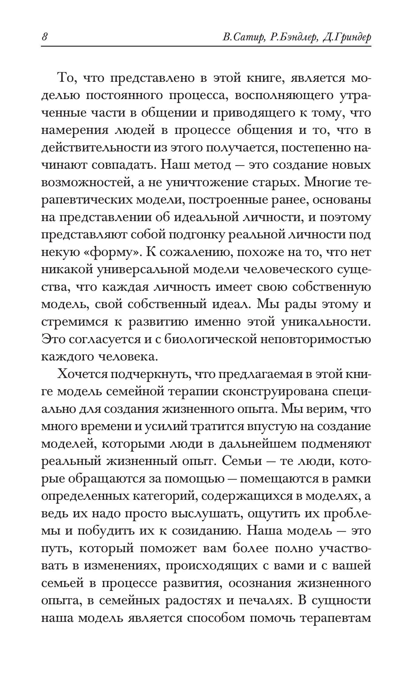 Книга основоположницы семейного консультирования Вирджинии Сатир посвящена важнейшей теме - работе с семьей. На примере тщательного разбора собственных случаев и случаев своих коллег-психотерапевтов Сатир демонстрирует филигранную технику психотерапевтической работы с разнообразными проблемами, возникающими в семье.