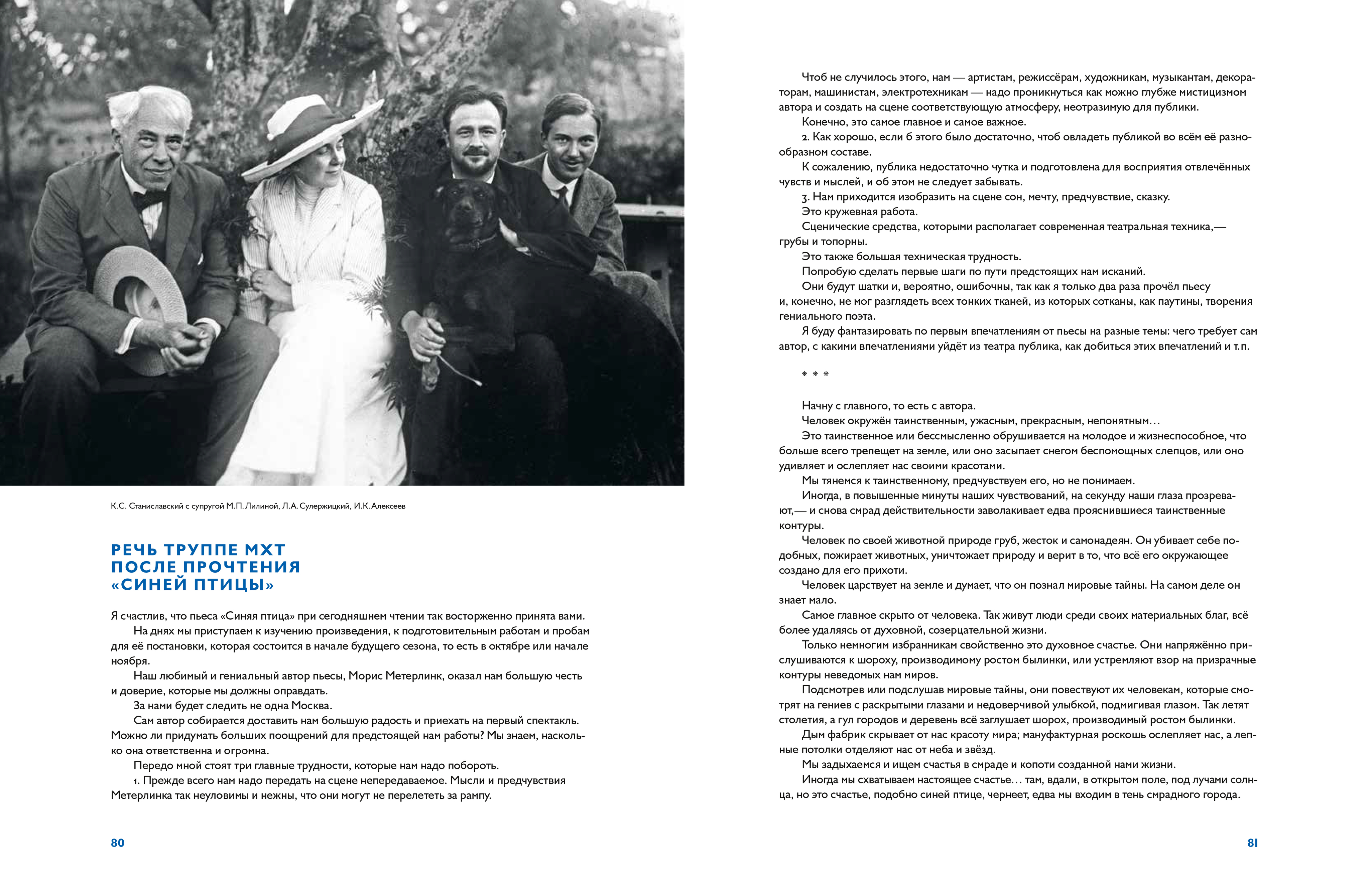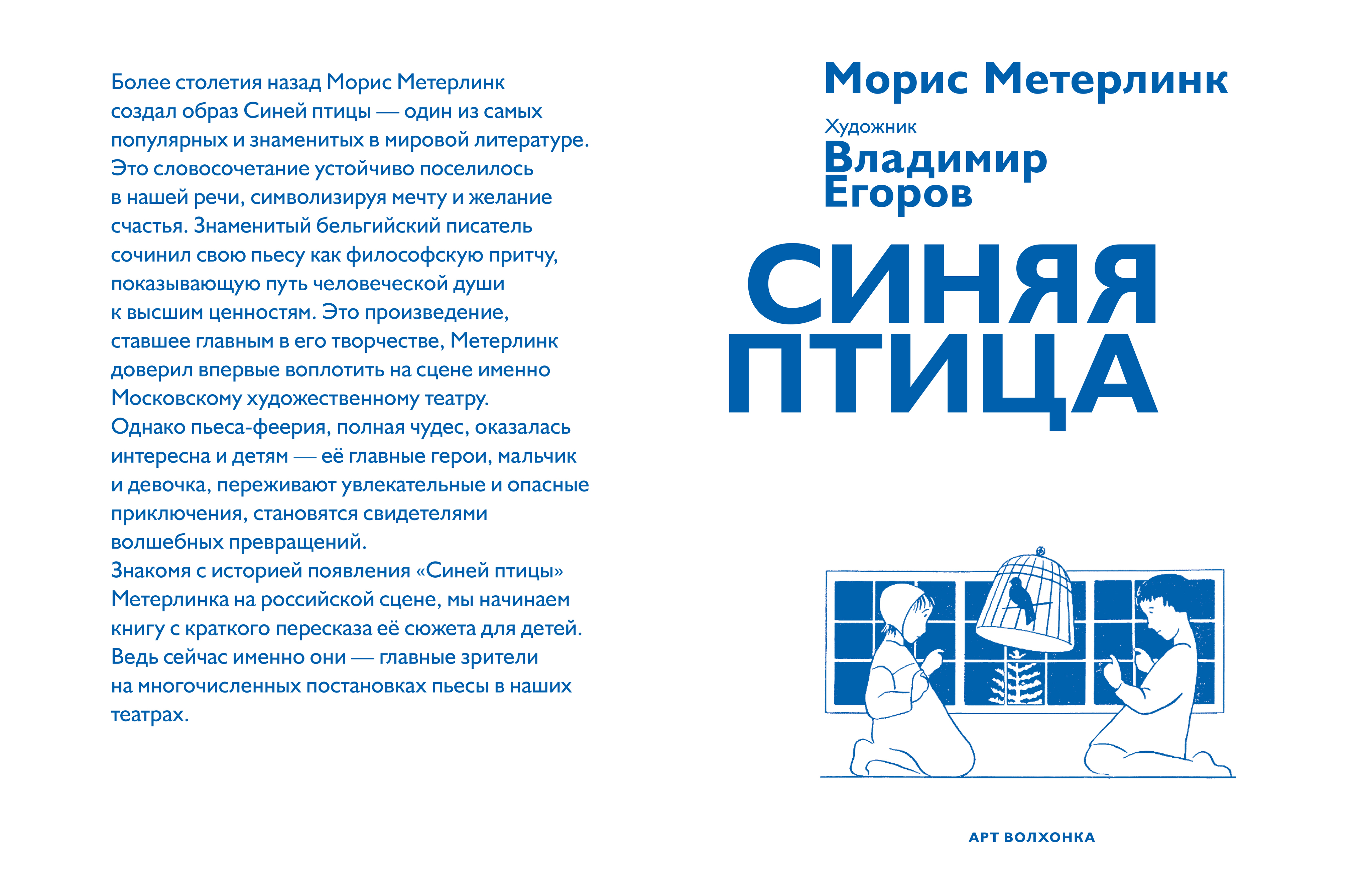 Более столетия назад Морис Метерлинк создал образ Синей птицы - один из самых популярных и знаменитых в мировой литературе. Это словосочетание устойчиво поселилось в нашей речи, символизируя мечту и желание счастья. Знаменитый бельгийский писатель сочинил свою пьесу как философскую притчу, показывающую путь человеческой души к высшим ценностям. Это произведение, ставшее главным в его творчестве, Метерлинк доверил впервые воплотить на сцене именно Московскому художественному театру. Однако пьеса-феерия, полная чудес, оказалась интересна и детям - её главные герои, мальчик и девочка, переживают увлекательные и опасные приключения, становятся свидетелями волшебных превращений. Знакомя с историей появления 'Синей птицы' Метерлинка на российской сцене, мы начинаем книгу с краткого пересказа её сюжета для детей. Ведь сейчас именно они - главные зрители на многочисленных постановках пьесы в наших театрах.