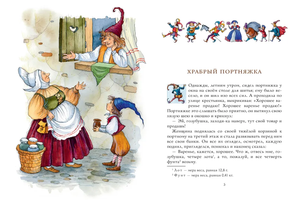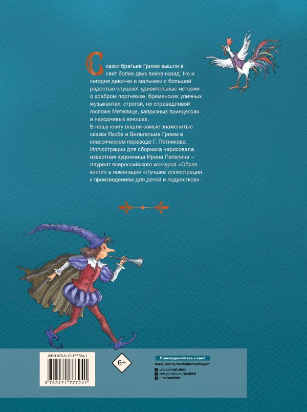 В книгу вошли самые лучшие сказки знаменитых братьев Гримм — «Храбрый портняжка», «Бременские уличные музыканты», «Госпожа Метелица», «Сладкая каша» и другие. Якоб и Вильгельм Гримм сочиняли их не сами, а записывали немецкие сказки, стараясь сохранить народный дух. Именно поэтому сказки получились такими яркими, озорными, а герои — запоминающимися. В сборнике представлен классический перевод Г. Петникова.