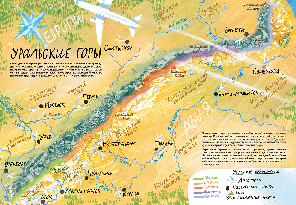 Тогда тебе нужен проводник. Захватывающее книжное путешествие, в которое ты отправляешься, подготовит тебя к встрече с настоящим Уралом. Ты многое узнаешь об истории горного хребта, его природных памятниках и заповедных территориях, познакомишься с обитателями Урала, местными легендами и преданиями. Пройдёшь разнотравные степи, широколиственные леса, таёжные буреломы и бескрайние тундры по следам опытного путешественника, что оставил подсказки — маршруты по Уралу разной степени сложности, правила поведения в дикой природе и рекомендации для подготовки к твоему первому походу в горы.