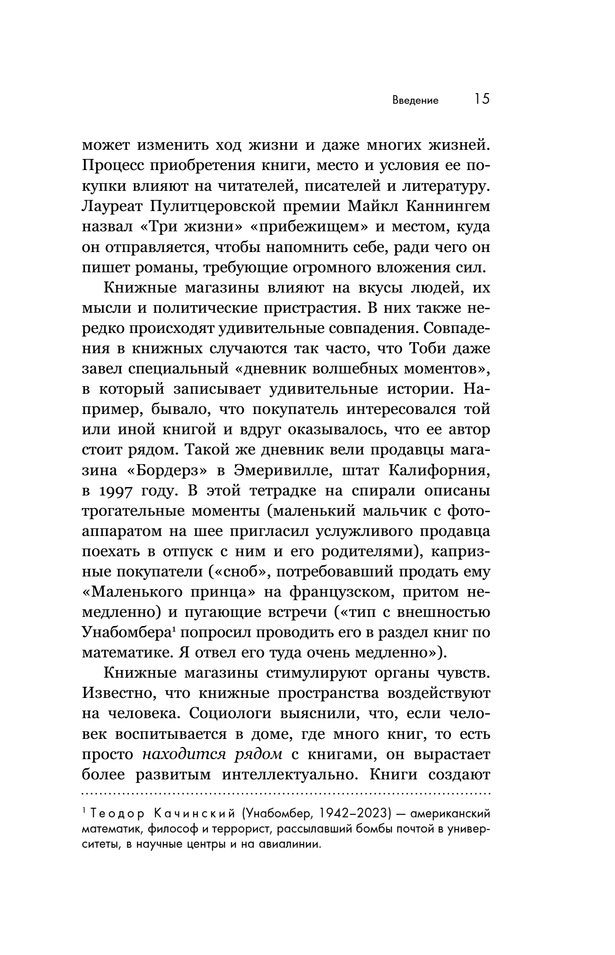 «Искреннее признание в любви к книжным магазинам. Эван Фрисс показывает их не как торговые точки, а как места силы — центры притяжения и формирования сообществ. В его книге книжные становятся тем, что меняет людей и культурную жизнь страны: это вовсе не про бизнес, а про идеи, живые разговоры и про людей. Для всех, кто работает с книгами или просто любит их, это важное напоминание: книжный магазин — куда больше, чем касса и стеллаж. Это гимн "живучести" и вере влюбленных в книги людей». — Евгения Рыкалова, издатель и медиаменеджер