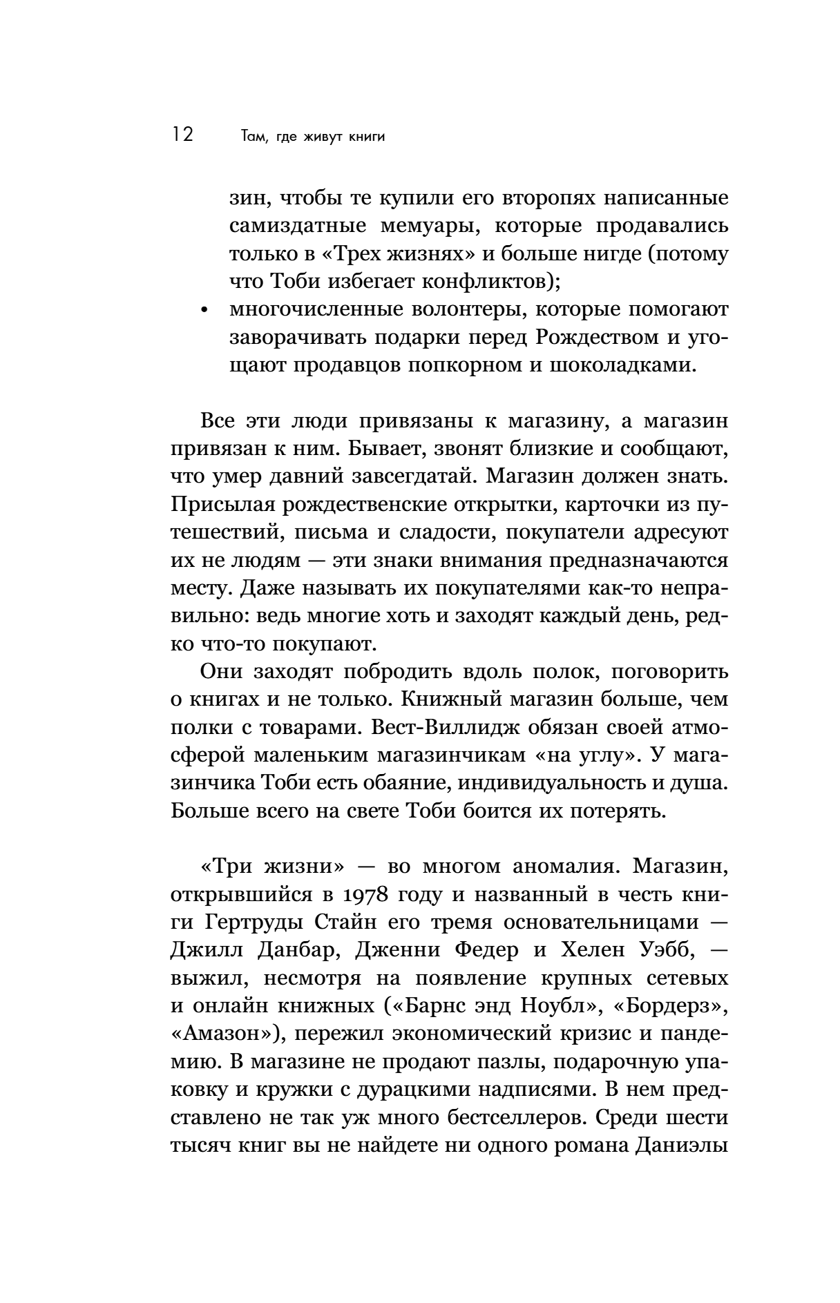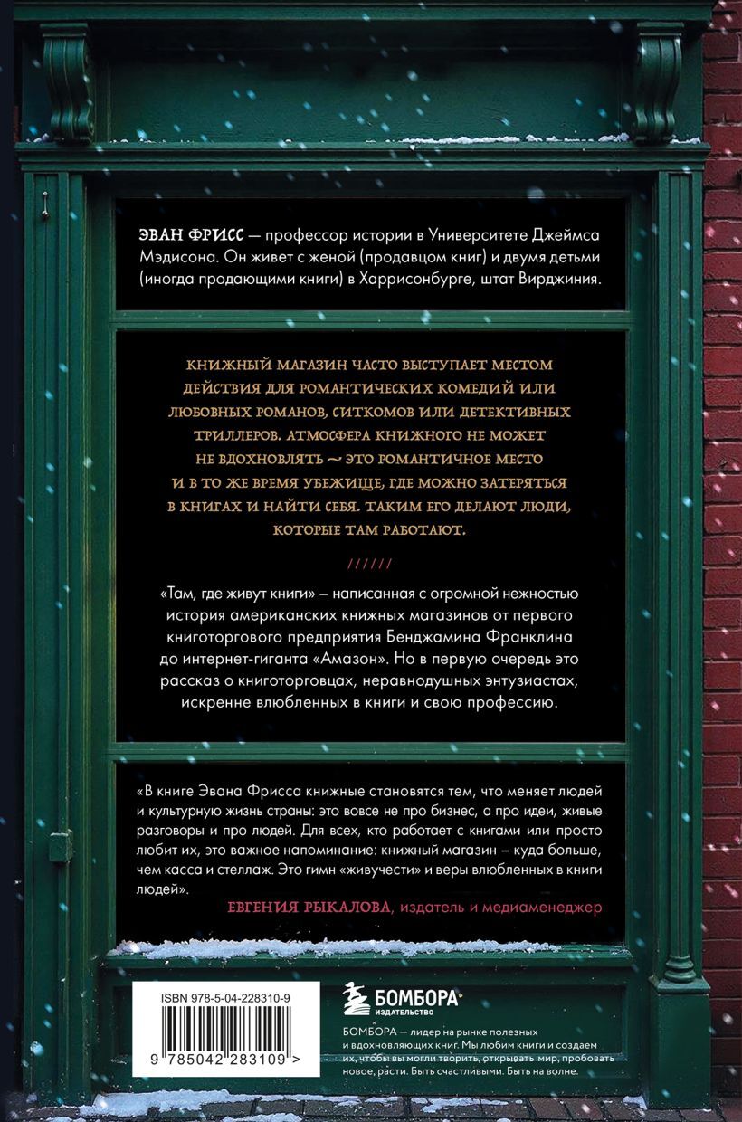 «Там, где живут книги» — написанная с огромной нежностью история американских книжных магазинов от первого книготоргового предприятия Бенджамина Франклина до интернет-гиганта «Амазон». Но в первую очередь это рассказ о книготорговцах, неравнодушных энтузиастах, искренне влюбленных в книги и свою профессию.