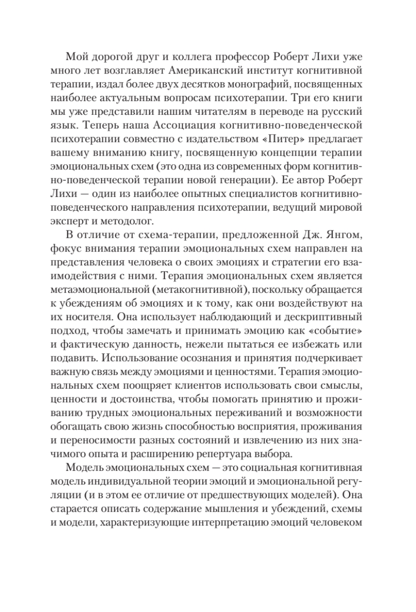 Роберт Лихи, автор бестселлеров "Свобода от тревоги" и "Лекарство от нервов", много лет исследует влияние эмоций на различные стороны восприятия жизни людьми. Он разработал новые способы принятия и преодоления негативных чувств. В этой книге представлены инновационные инструменты, помогающие понять эмоциональные схемы, например, такие как убежденность, что болезненные чувства невыносимы, позорны или будут длиться бесконечно долго. Как специалисты, так и не психологи теперь могут применять этот метод в работе с собой и другими.