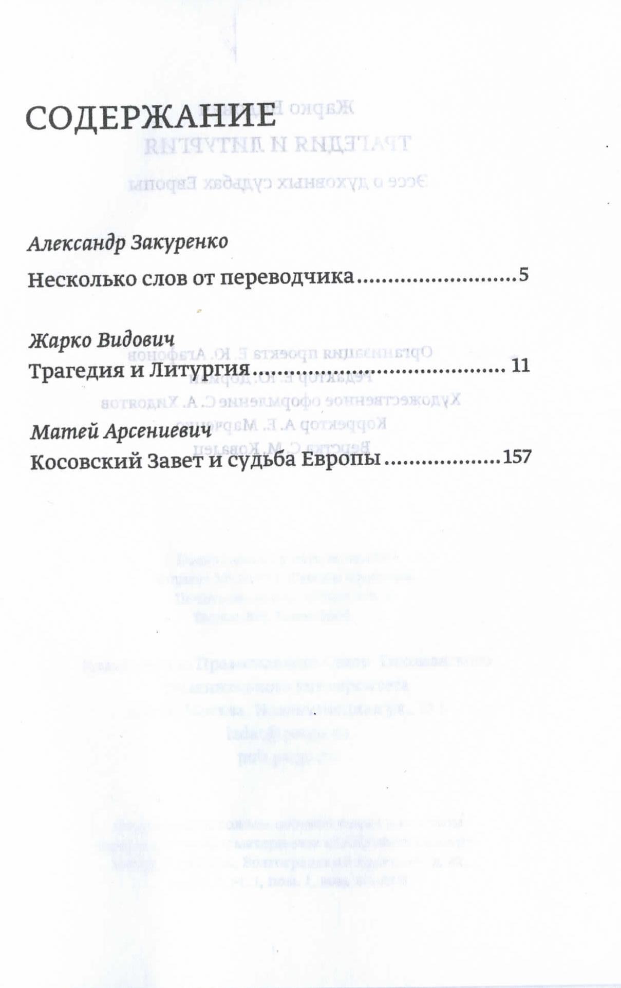 Профессор Жарко Видович был награжден высшей наградой Сербской Православной Церкви — орденом Святого Саввы — за выдающиеся достижения в изучении наследия крупнейшего сербского поэта Негоша. Предлагаемое издание — первая книга автора, выходящая в России, посвящена осмыслению противостояния и взаимодействия двух фундаментальных начал европейской цивилизации, которые Видович ассоциирует с духовно-культурными феноменами античной трагедии и византийской литургии.