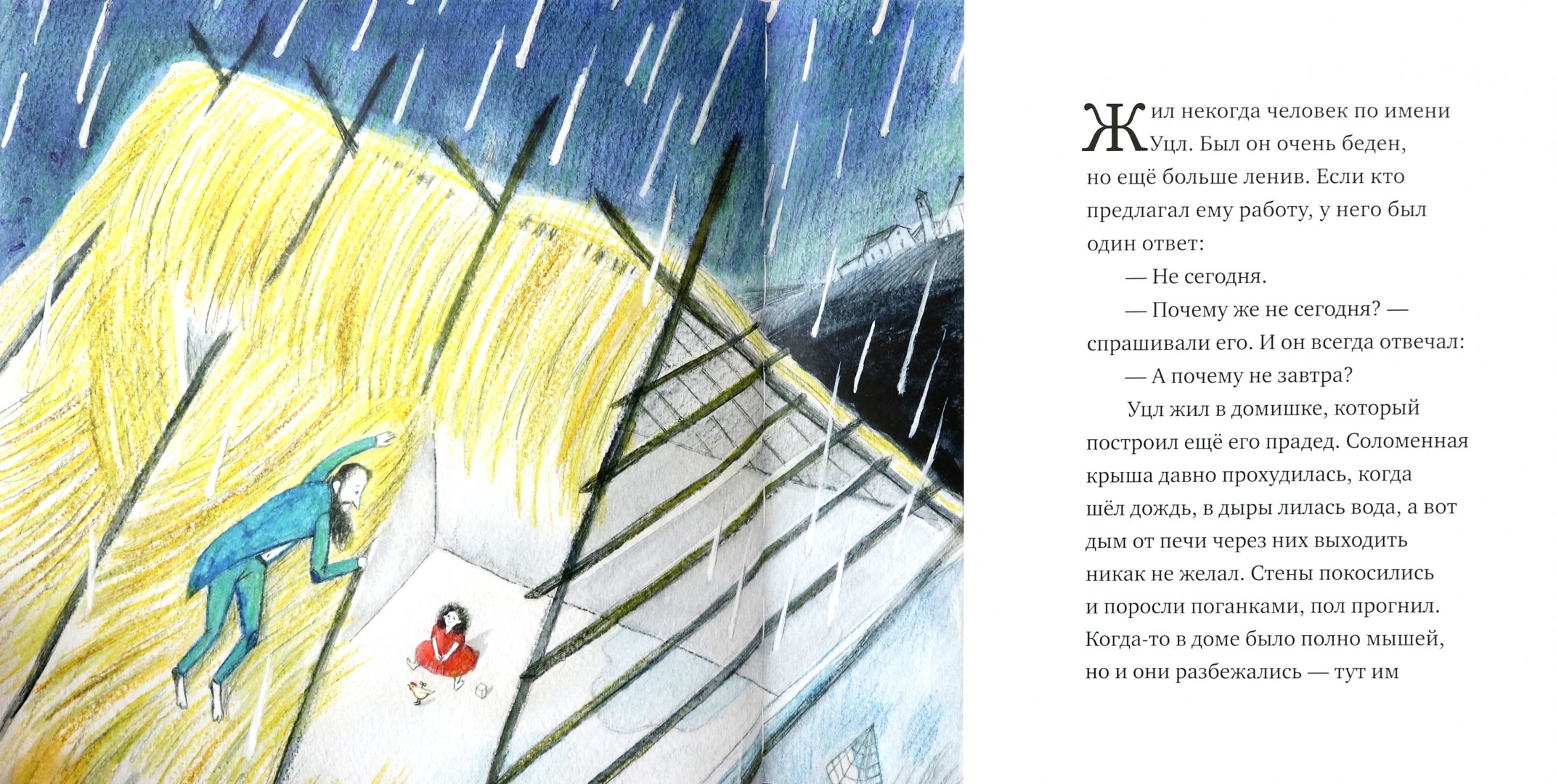 Сказка-притча о ленивом и завистливом человеке по имени Уцл. Ничто не могло заставить его работать. Только одно в его жизни было положительное — Уцл очень любил свою дочь Бедность. Но чем больше он ленился, тем выше и толще становилась его дочь, и никто из парней не обращал на нее внимания. Так продолжалось до тех пор, пока однажды сапожник не сделал для Бедности башмачки.