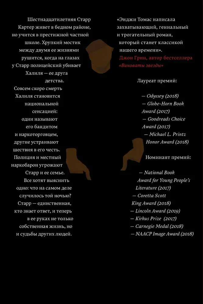 Шестнадцатилетняя Старр Картер живет в бедном районе, но учится в престижной частной школе. Хрупкий мостик между двумя ее жизнями рушится, когда на глазах у Старр полицейский убивает Халиля — ее друга детства. Совсем скоро смерть Халиля становится национальной сенсацией: одни называют его бандитом и наркоторговцем, другие устраивают шествия в его честь. Полиция и местный наркобарон угрожают Старр и ее семье. Все хотят выяснить одно: что на самом деле случилось той ночью? Старр — единственная, кто знает ответ, и теперь в ее руках не только собственная жизнь, но и судьбы других людей.