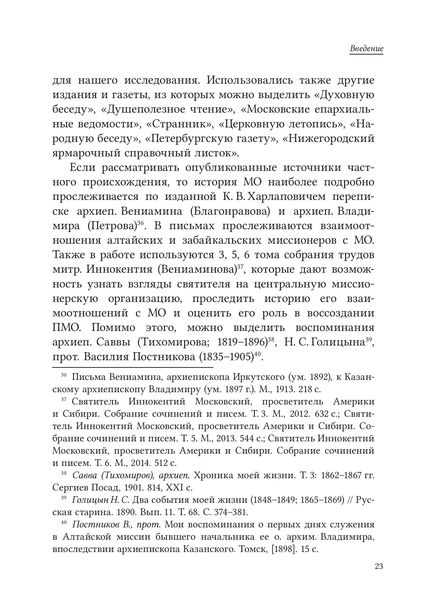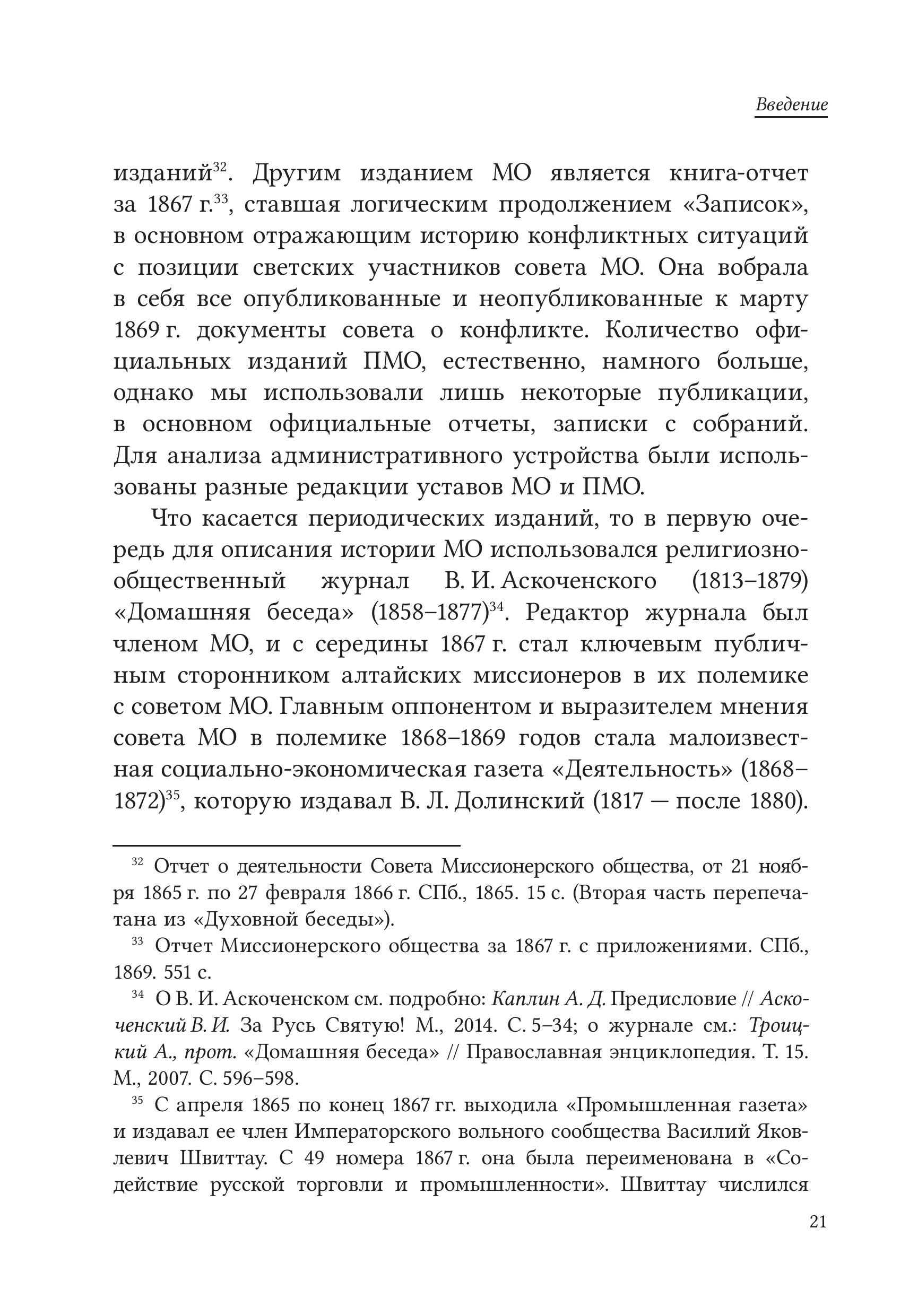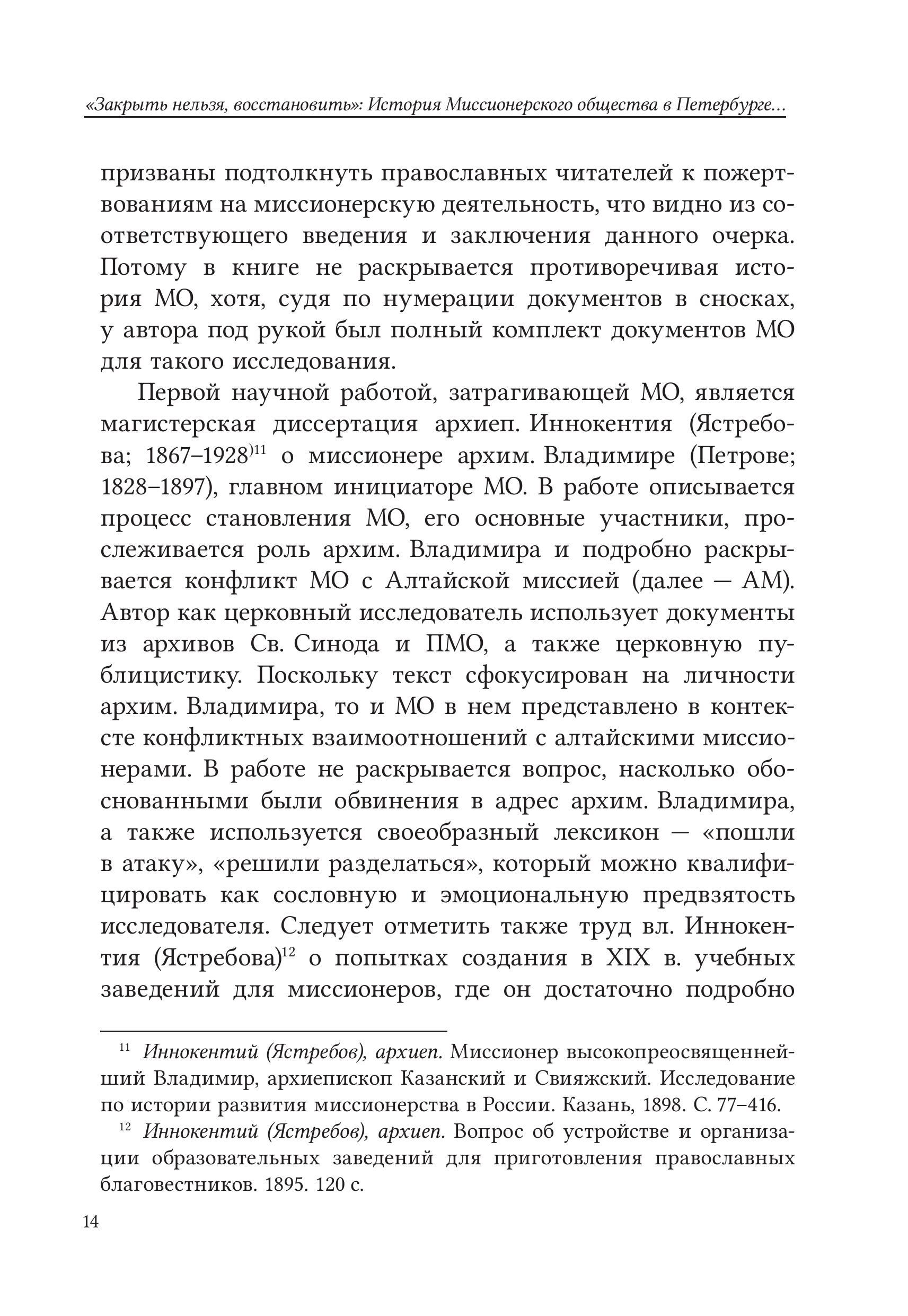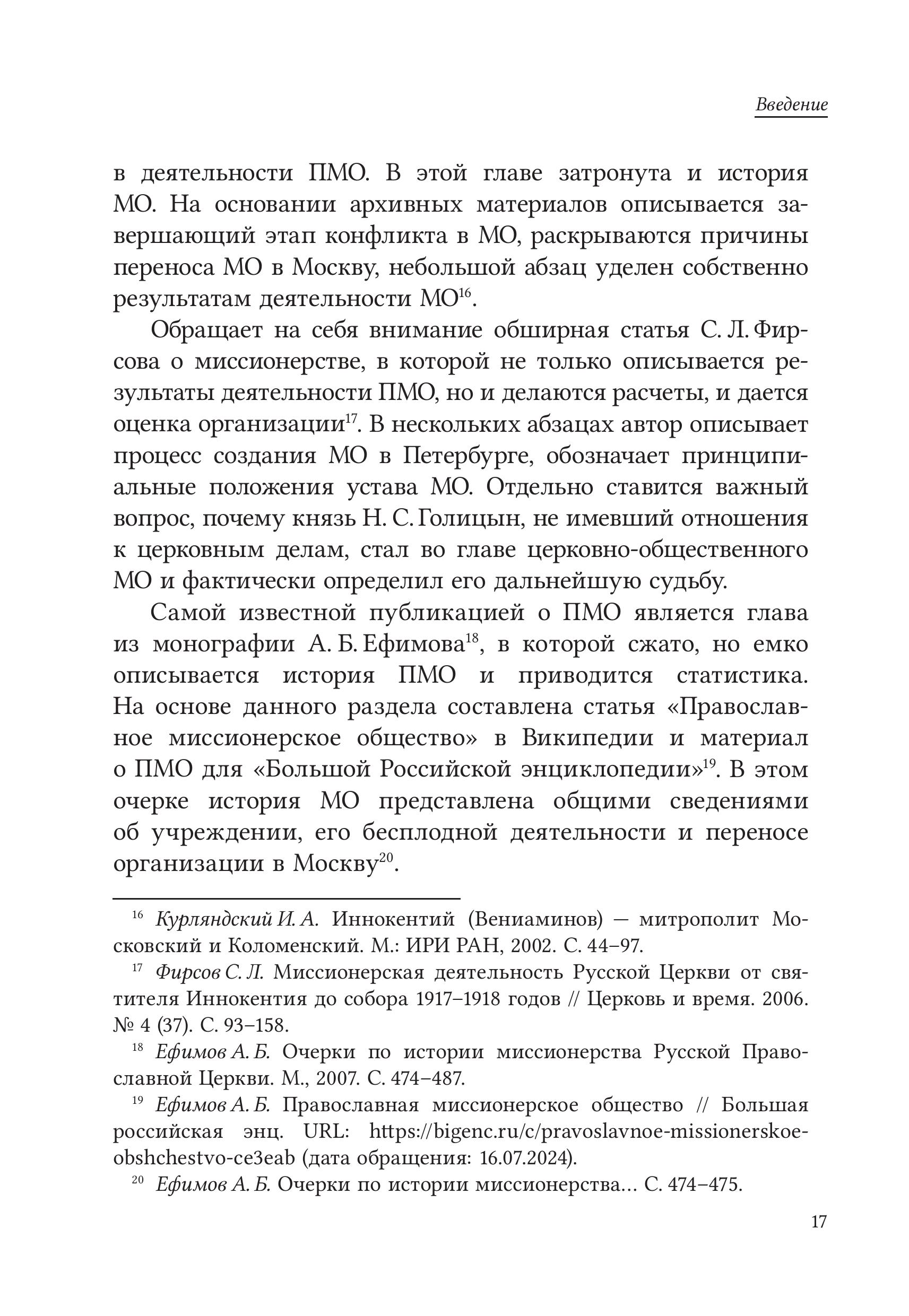 История Миссионерского общества в Петербурге рассматривается в широком контексте миссионерских и общественных изменений второй половины XIX в. Противоречивая история данной церковно-общественной организации анализируется с учетом максимального количества факторов, повлиявших как на ее создание, так и на ее упразднение. В монографии представлено авторское описание состояния православного миссионерства к середине XIX в., в котором структура повествования согласовывается с теорией формирования профессиональной среды миссионеров. Также предпринята попытка разностороннего изучения конфликтной ситуации вокруг организации, с акцентом на вопрос, почему близкие по идеологическим (консервативным) и религиозным (православным) взглядам общественные деятели стали инициаторами межсословного противостояния.