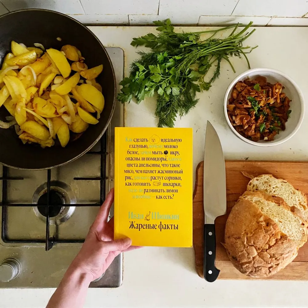 «Жареные факты» — третья книга Ивана Шишкина, одного из основателей и идеолога кухни московского ресторана Delicatessen, отмеченного гидом «Мишлен». Перед вами экстракт поварской мудрости и остроумия в 137 ответах на вопросы о том как, что и зачем мы едим. Почему в южных странах апельсины не оранжевые, а зеленые, какие курицы летают самолетами, почему с помощью киви легче всего замариновать мясо, можно ли есть медуз и чем опасна ваниль? Вы также найдете здесь два десятка рецептов — от печенья из подсолнечника до черных шотландских яиц — и несчетное количество ценных советов и идей, способных изменить ваш взгляд на приготовление пищи.