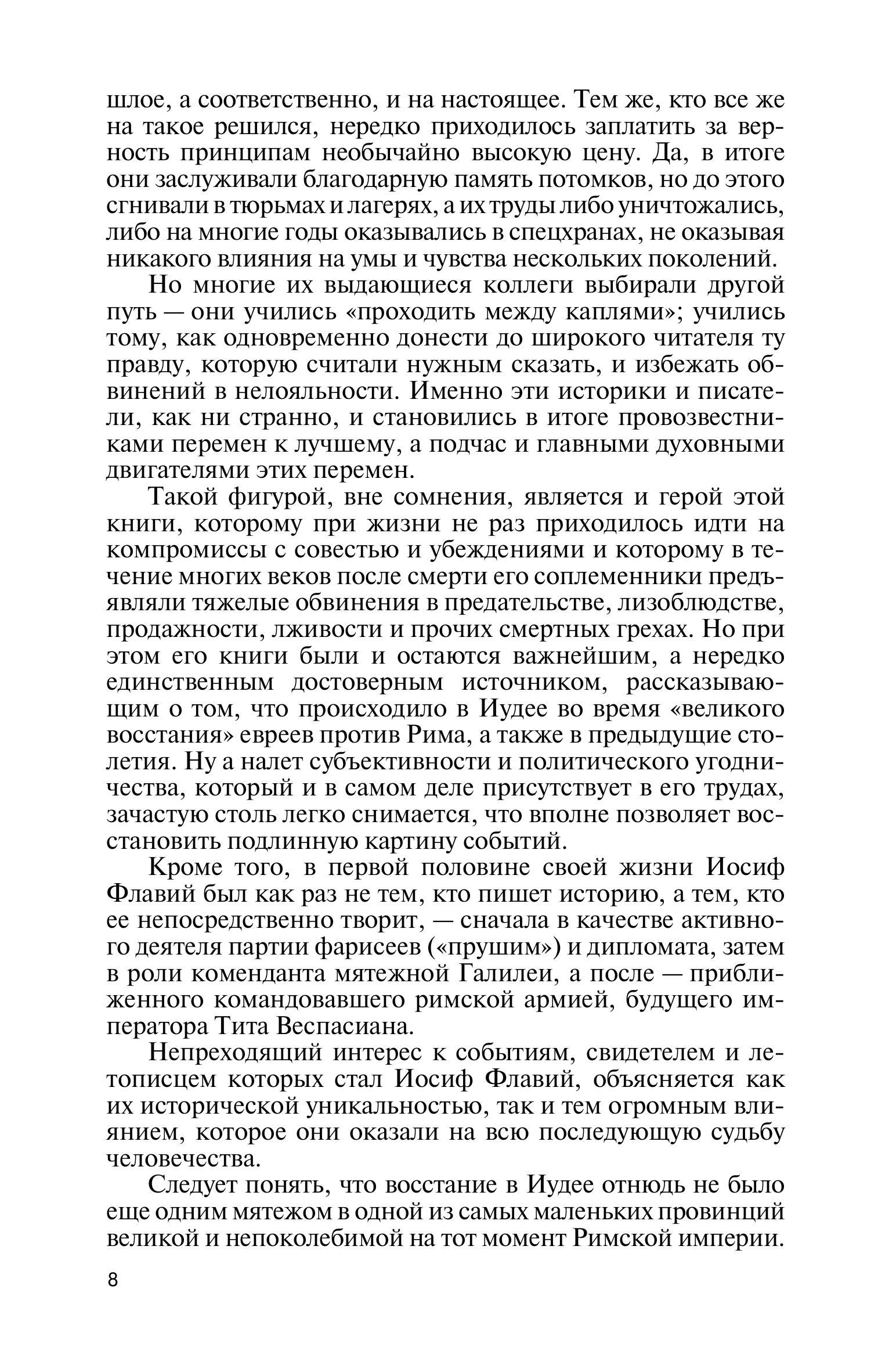 Но кем был их автор: предателем своего народа (каким в течение почти двух тысячелетий считало его большинство евреев), подручным римских цезарей, получившим право носить их родовое имя - Флавий, и в угоду им сочинявшим свои исторические труды - или же человеком, преданным вере отцов и пытавшимся до конца жизни отстаивать интересы своего народа? Какое значение для апологетики христианства имеют свидетельства Флавия о личности Иисуса Христа и почему его книги еще в древности были переведены на многие языки (в том числе на древнерусский)? Такие вопросы ставит перед собой автор книги, известный израильский писатель, историк и журналист Петр Люкимсон.
